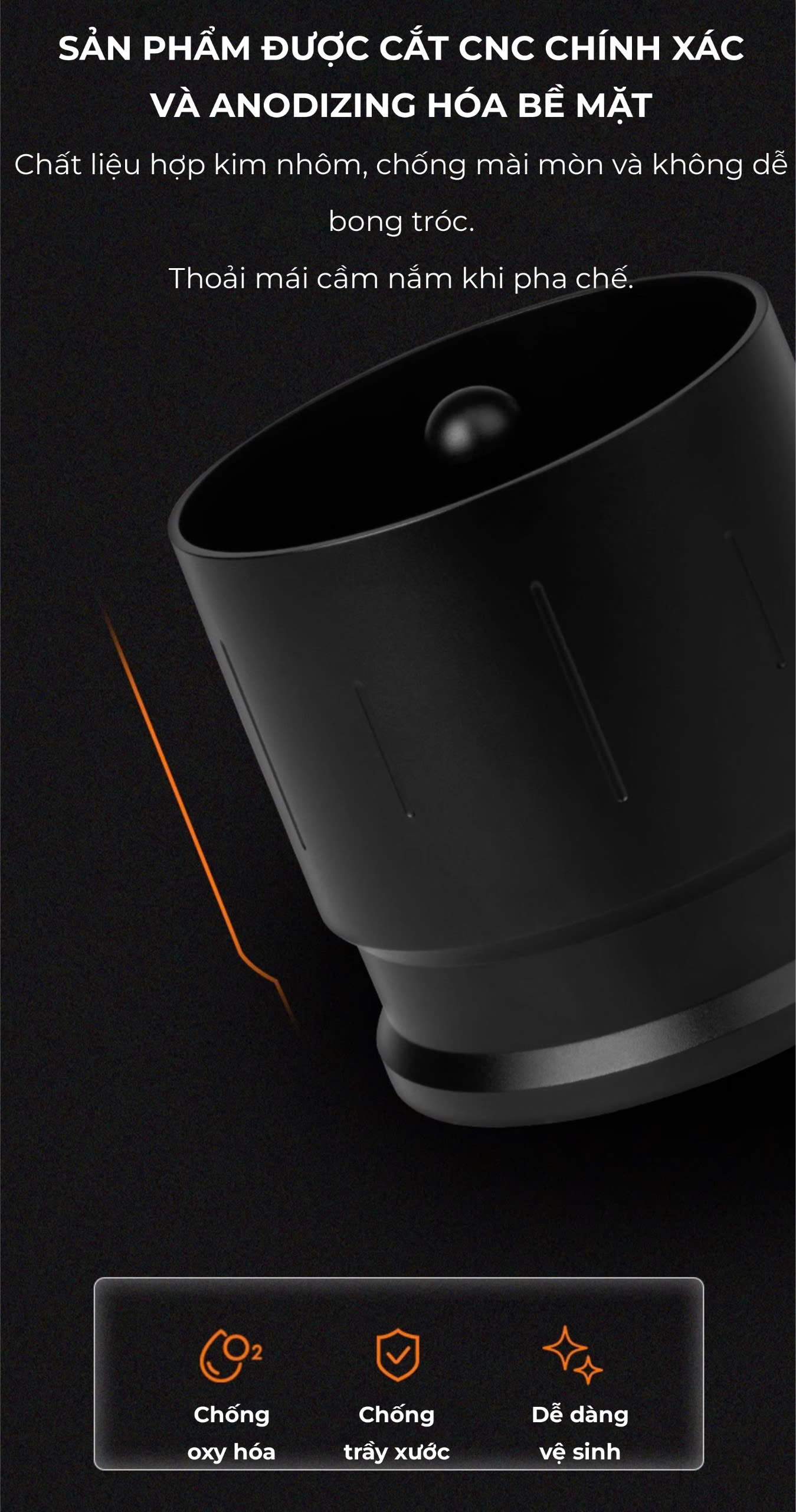 ️ Giữ bột cà phê không rơi vãi, giúp quầy pha chế luôn sạch sẽ.
