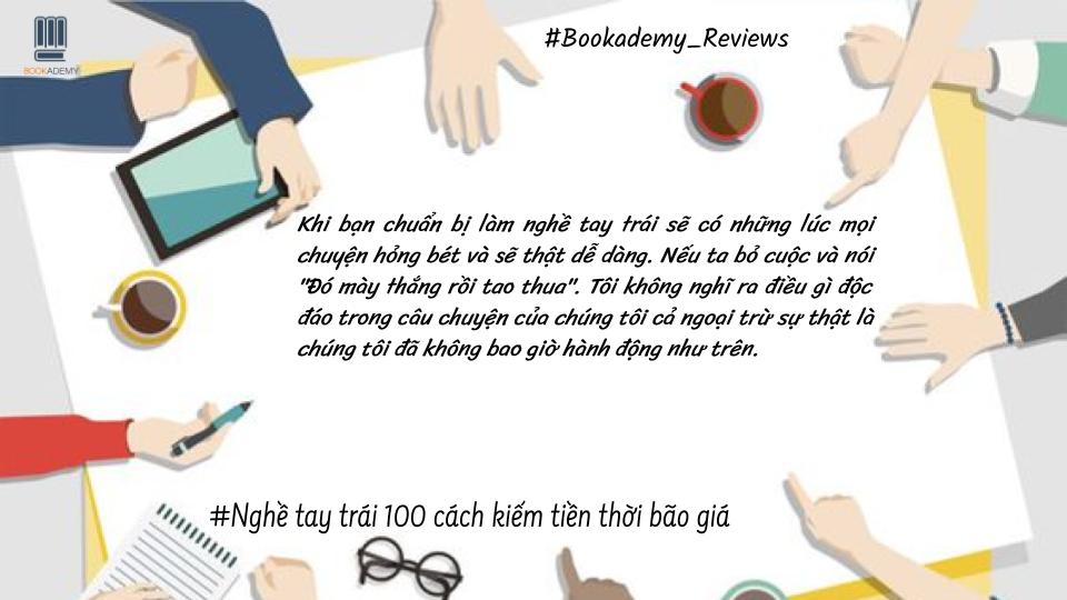 “NGHỀ TAY TRÁI: 100 cách kiếm tiền thời bão giá” kể về các câu chuyện khởi nghiệp của những con người bình thường. Họ tạo ra các công việc kinh doanh ngoài giờ để kiếm thêm thu nhập, dựa trên các sáng kiến mà hầu như ai cũng có thể thực hiện: trở thành hướng dẫn viên du lịch trong thành phố, người làm kem que, nhiếp ảnh gia sử dụng kim tuyến làm đạo cụ, bán võng cùng bạn bè để hỗ trợ các nền kinh tế địa phươ Qua 100 câu chuyện độc đáo, tác giả có những tác phẩm bán chạy nhất - Chris Guillebeau - đã cung cấp một “cuốn sách ý tưởng” tràn đầy cảm hứng để chính bạn có thể nảy ra ý tưởng lớn cho riêng mình. Những người thuộc nhiều ngành nghề khác nhau - như các giáo viên, các nhân viên văn phòng hay các lập trình viên - đã tìm cách tạo ra nguồn thu nhập mới, có thể là dựa trên sức lực của chính mình, nhờ hợp tác với bạn bè, hoặc lôi kéo cả gia đình cùng tham gia.