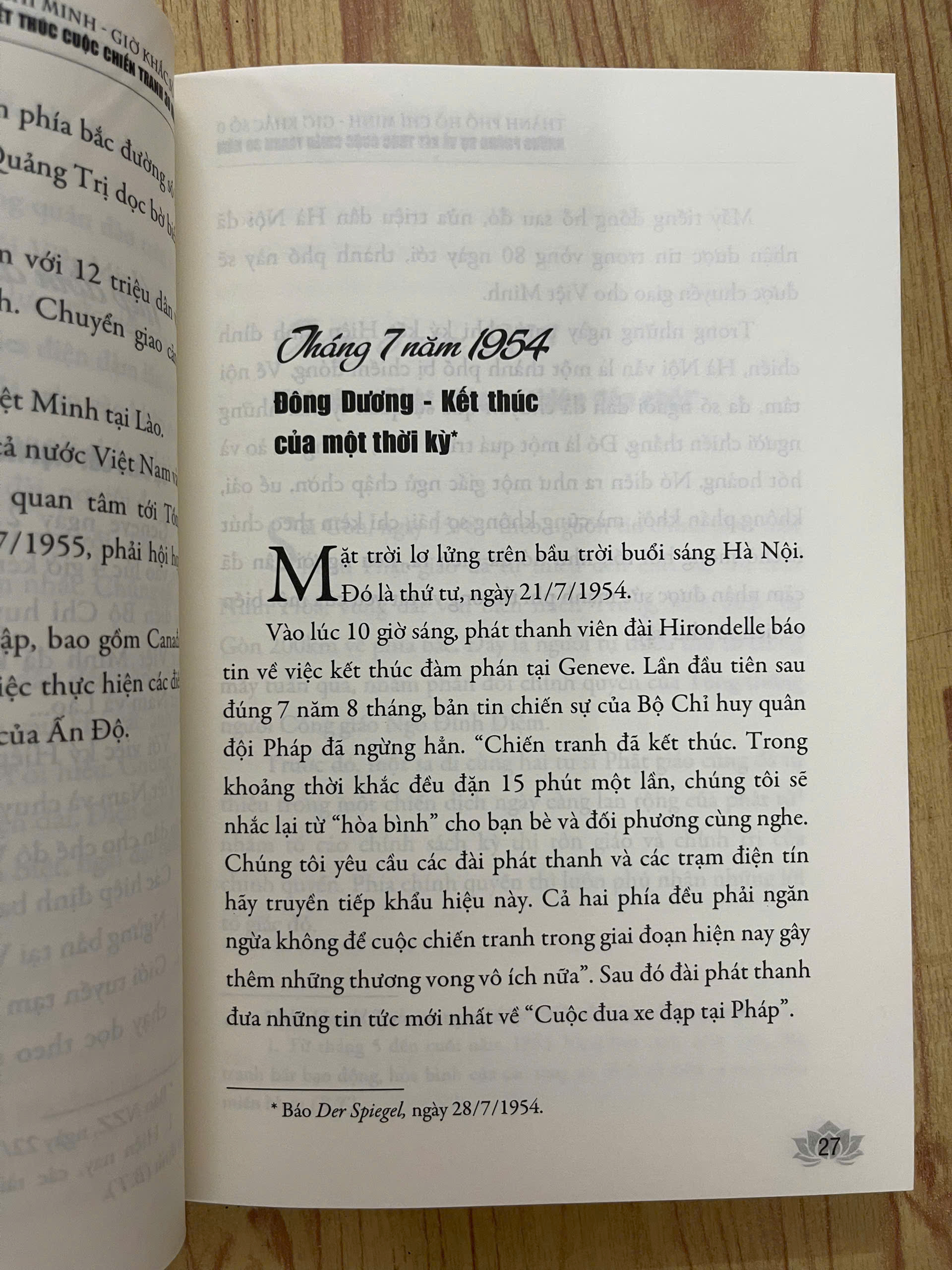 - THÀNH PHỐ HỒ CHÍ MINH - GIỜ KHẮC SỐ 0 - Những Phóng Sự Về Kết Thúc Cuộc Chiến Tranh 30 Năm (Borries Gallasch) I.NỘI DUNG Cuốn sách “Thành phố Hồ Chí Minh - Giờ khắc số 0 - Những phóng sự về kết thúc cuộc chiến tranh 30 năm” gồm những bài tường thuật của nhiều nhà báo phương Tây - những người đã trực tiếp có mặt tại Việt Nam trong những ngày tháng lịch sử. Họ chứng kiến các đoàn quân Giải phóng hành quân vào miền Nam, mang theo tinh thần kiên định “dân tộc Việt Nam là một” và niềm tin tất thắng. Họ chứng kiến những cảnh tượng hỗn loạn của cuộc di tản do Mỹ tổ chức, khi trực thăng nối đuôi nhau rời khỏi Sài Gòn, để lại một thành phố hoang tàn. Và chỉ sau một tuần, họ lại nhìn thấy một Sài Gòn khác - bình tĩnh, trật tự và tràn đầy biểu tượng của một thời đại mới. Một trong những điểm đặc sắc của cuốn sách chính là cách những nhà báo mô tả sự thay đổi của con người và không khí trong thành phố trước và sau ngày 30/4/1975. Đó là những chiến sĩ Quân Giải phóng với bộ quân phục màu xanh lá cây cùng đôi dép cao su Hồ Chí Minh trò chuyện cởi mở với người dân. Đó là hình ảnh những học sinh trong tà áo dài trắng, những bà mẹ, những người thân ôm nhau khóc trong ngày đoàn tụ. Người dân Sài Gòn, sau những ngày đầu lo lắng, đã trở lại cuộc sống thường nhật, dẫu biết rằng trước mắt họ là một hành trình đầy thách thức để xây dựng lại đất nước. Bên cạnh những câu chuyện của từng cá nhân, cuốn sách phản ánh một sự thật sâu sắc: Chiến thắng của Việt Nam không chỉ đơn thuần là thắng lợi của một ý thức hệ hay một lực lượng quân sự, mà đó là chiến thắng của cả một dân tộc - những con người đã chịu đựng quá nhiều mất mát, chia cắt và đau thương để giành lại độc lập, tự do. Những người lính miền Bắc vào Nam không chỉ giành lại hòa bình, độc lập, tự do cho dân tộc Việt Nam, mà còn tìm lại gia đình, người thân - những người đã bị chia lìa bởi chiến tranh suốt hàng chục năm. Khoảnh khắc gặp lại cha mẹ, anh chị em sau bao năm xa cách trở thành một trong những biểu tượng của hòa bình, thống nhất đất nước. Với góc nhìn của những người ngoài cuộc, nhưng lại có cơ hội chứng kiến cận cảnh những giờ phút lịch sử, “Thành phố Hồ Chí Minh - Giờ khắc số 0 - Những phóng sự về kết thúc cuộc chiến tranh 30 năm” là một cuốn sách tư liệu quý giá, mang đậm hơi thở của thời đại. Đây là một cuốn sách không chỉ dành cho những bạn đọc quan tâm đến lịch sử Việt Nam, mà còn cho những bạn đọc muốn hiểu sâu hơn về sự chuyển mình của một dân tộc sau chiến tranh - về nỗi đau, niềm vui và cả những hy vọng vào một tương lai tốt đẹp hơn.