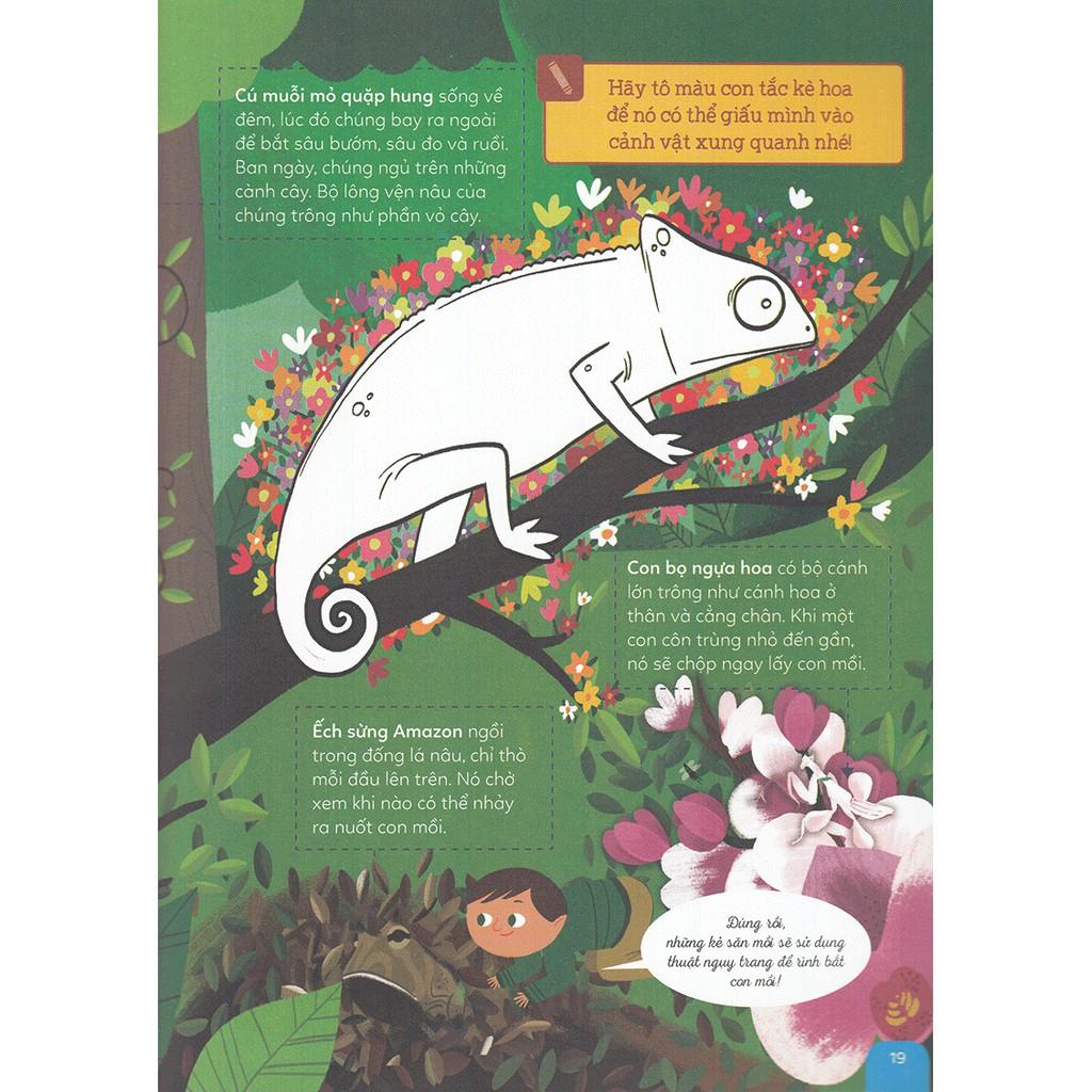 Tập sách giúp bé nhận biết các loài động vật hoang dã như: hổ, báo, cá sấu… cùng những thông tin xung quanh kích thước cơ thể, lối sống và môi trường số Bé cũng sẽ biết được những kỉ lục của thế giới rừng già như: loài có loài kích thước lớn nhất, nhỏ nhất, các hệ sinh thái đặc trưng… Đặc biệt, với bộ sách này, các bé không chỉ được nhận biết về thế giới động vật, nơi sinh sống, thức ăn chính… của chúng mà còn được cắt - dán - xếp hình, tô mà theo tiêu chí tổ chức: Học – Chơi – Khám Phá. Nhờ vậy, tập sách giúp thế giới quan của trẻ hình thành sống động, giúp trẻ phát triển khả năng quan sát, tưởng tượng, ghi nhớ, khả năng thể hiện cảm xúc và trí thông minh của mình.