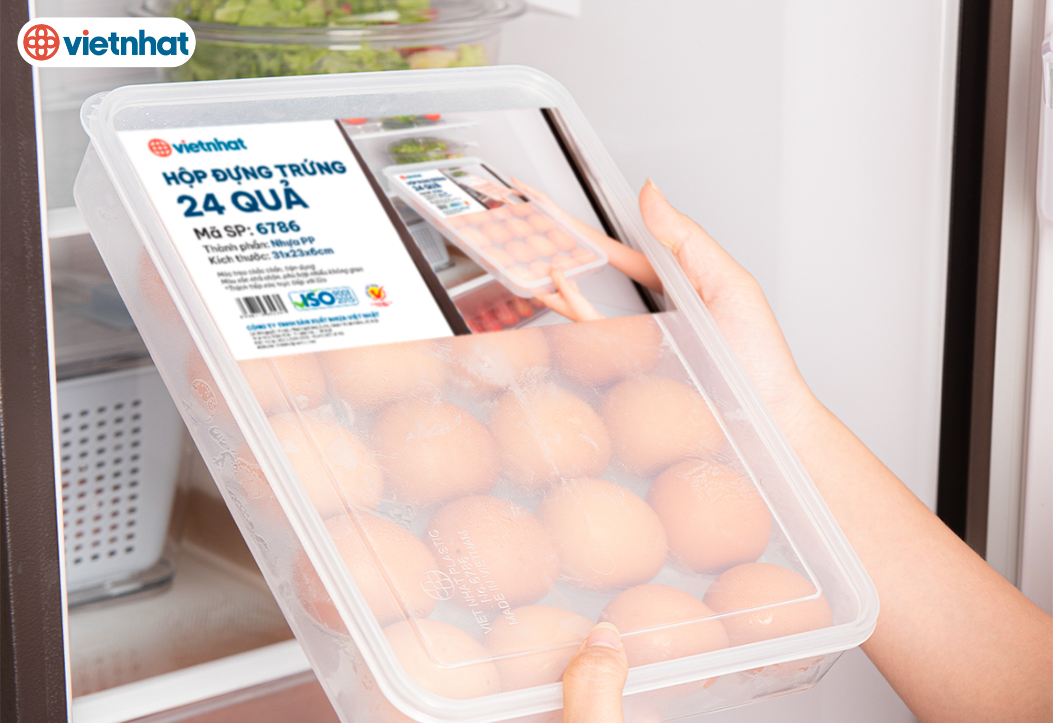 - Thiết kế hộp lớn với sức chứa 24 quả trứng. - Có các ô để trứng riêng biệt giúp cố định trứng không bị xô lệch và dễ lấy ra khi chế biến. - Nắp đậy kín đảm bảo vệ sinh, giúp bạn bảo quản trứng tươi lâu hơn và tiện lợi khi di chuyển. - Nắp hộp có thiết kế các rãnh, có thể xếp chồng lên nhau giúp tiết kiệm không gian. - Chất liệu nhựa PP nguyên sinh bền đẹp, an toàn cho sức khỏe, không gây mùi ra tủ lạnh. - Hộp có màu trong suốt để dễ quan sát số lượng trứng bên trong. - Dễ dàng vệ sinh, bảo quản.