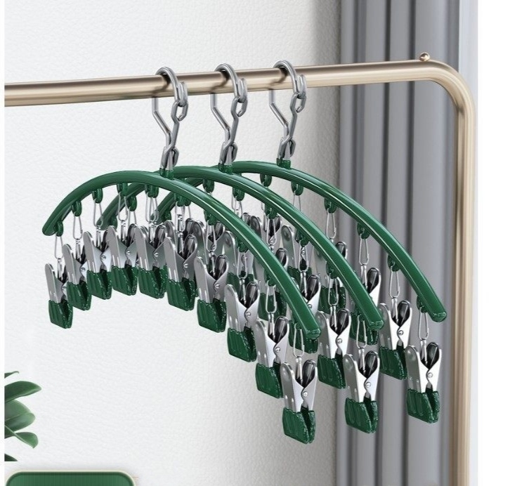 giới thiệu sản phẩm móc treo quần áo inox 10 kẹp / móc treo có khóa tự động chắc chắn chống khi phơi bị rớt khi gặp gió to