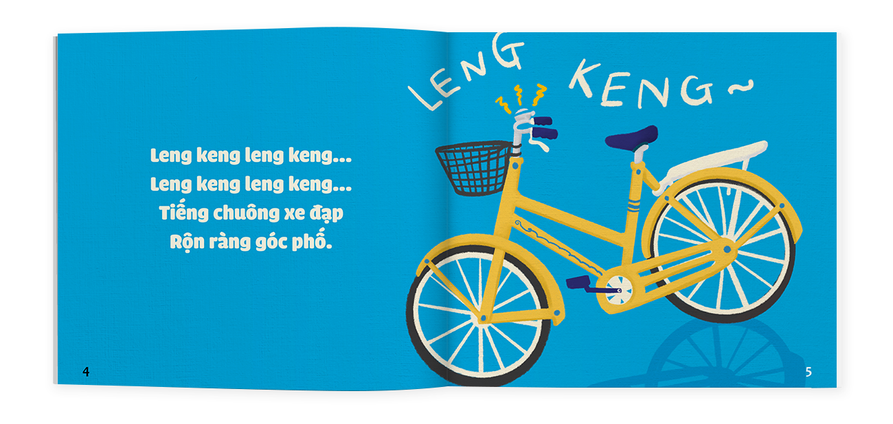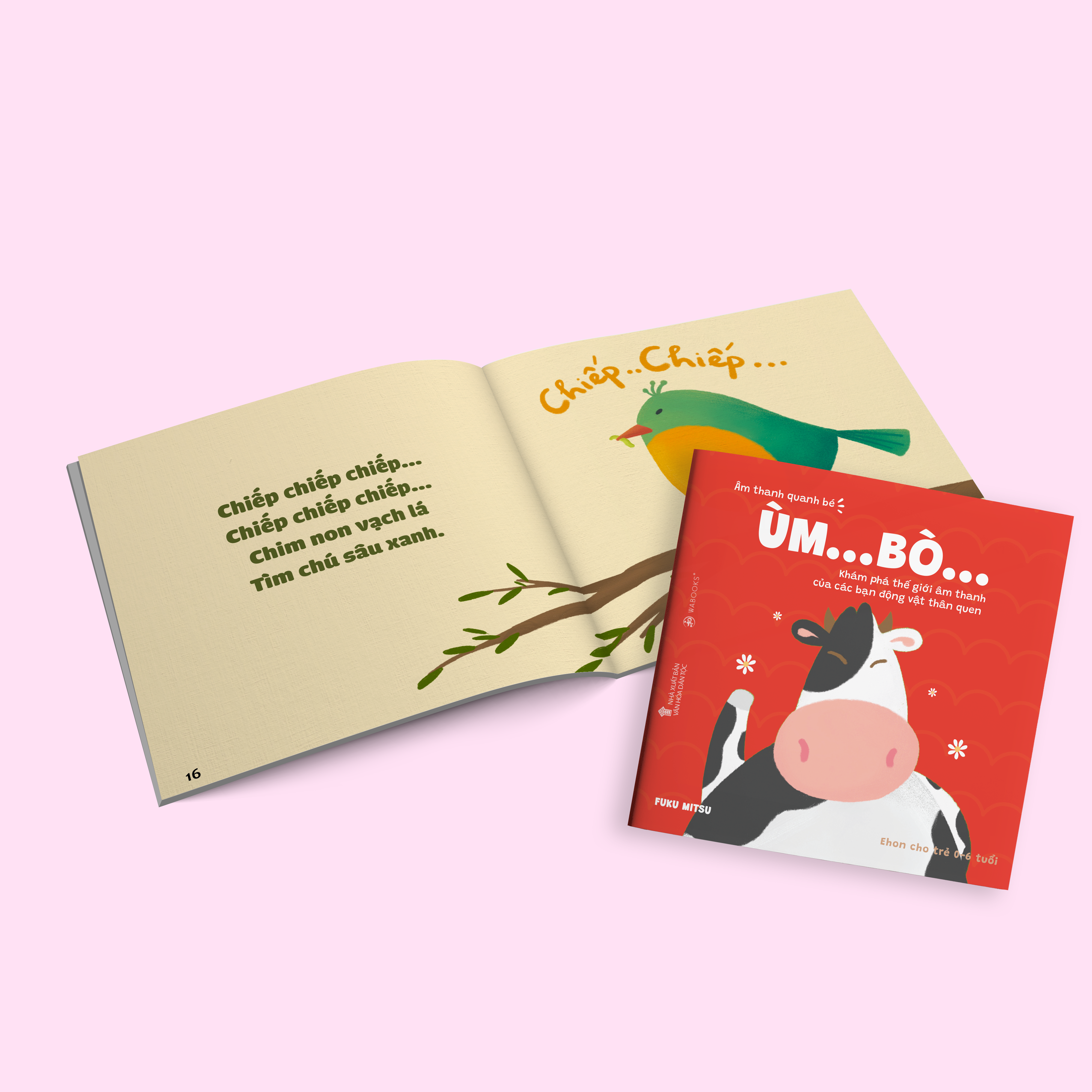 Bộ sách phù hợp cho bé 0-4 tuổi Cùng khám phá những từ mô tả tiếng kêu của các bạn động vật gần gũi như bạn chó kêu gâu gâu, gà con kêu chiếp chiếp, ... trong cuốn Ùm... Bò... Tùng ... Tùng ... là cuốn Ehon chứa đựng những từ tượng thanh của các đồ vật thân quen như máy sấy có tiếng ro ro, gõ phần phím có tiếng lạch cạch, ... Xe cứu thương kêu Ò E, xe máy kêu zìn zìn, vậy xe hơi phát ra tiếng gì nhỉ?, bố mẹ hãy cùng bé tìm hiểu trong cuốn Leng... Keng... nhé