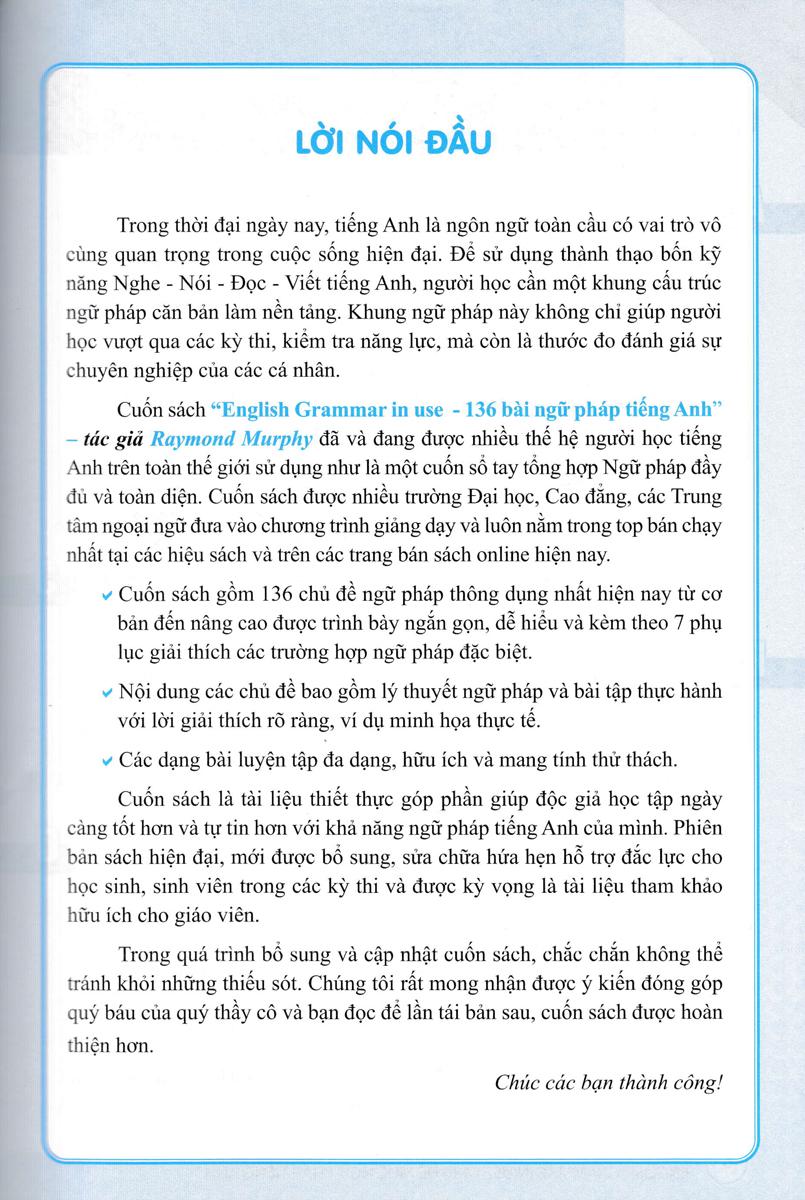 English Grammar In Use - 136 Đề Mục Ngữ Pháp Tiếng Anh Không phải ngẫu nhiên cuốn sách English Grammar In Use - 136 Đề Mục Ngữ Pháp Tiếng Anh lại được nhiều học viên tìm