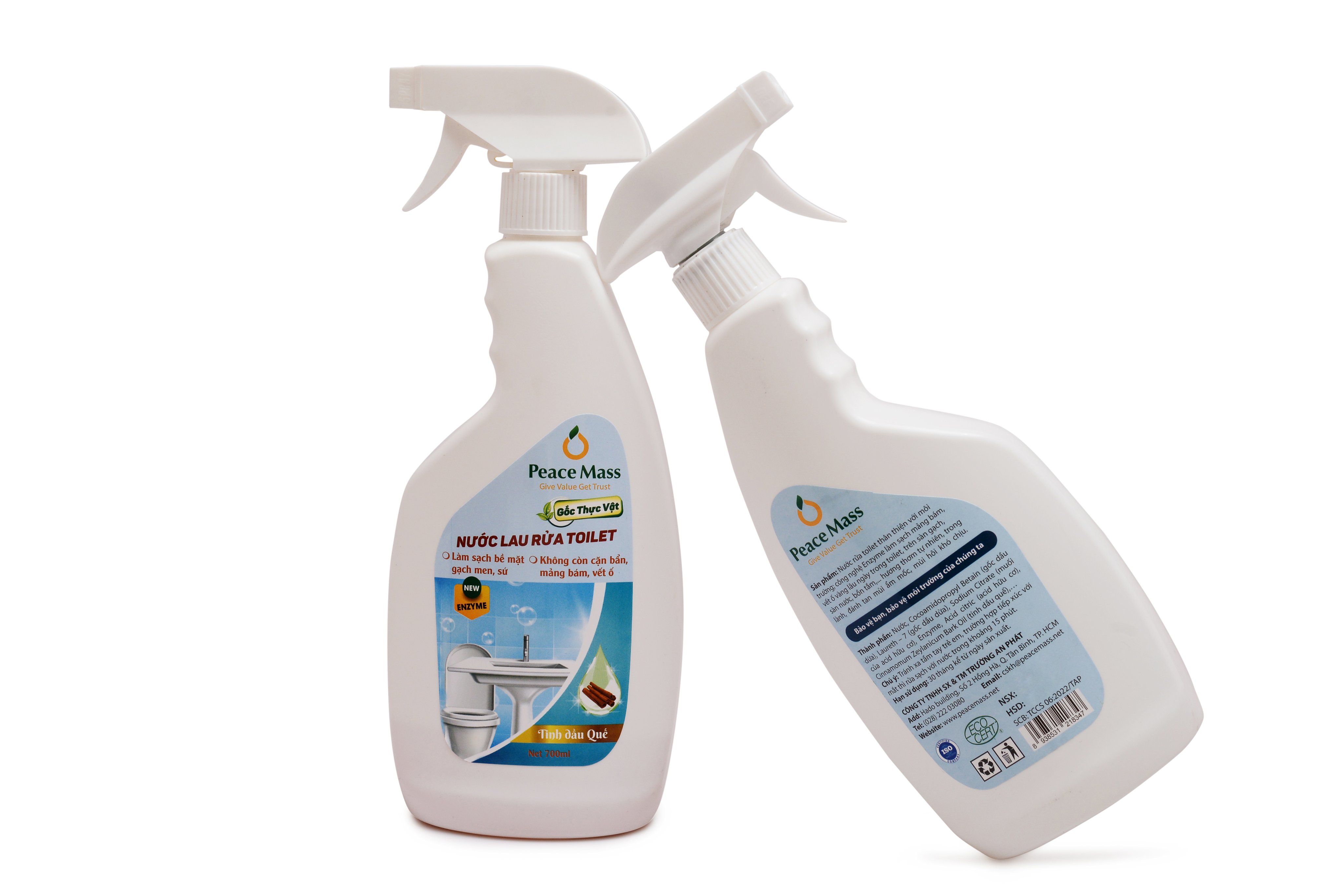 Thông tin sản phẩm - Tên sản phẩm: Nước lau rửa toilet Peace Mass Tihh dầu Quế - Nước lau kính Tinh dầu Bạc hà Peace Mass - Thể tích: 700ml/Chai xịt - Quy