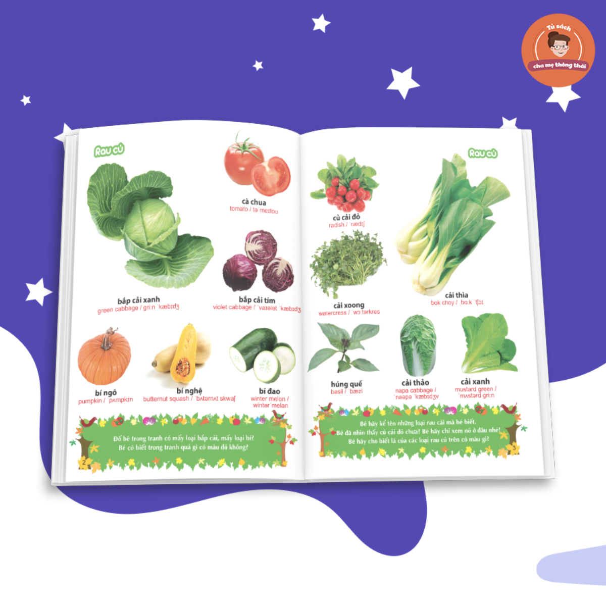 Bên cạnh đó hình thức song ngữ giúp bé gia tăng vốn từ vựng cả về Tiếng Việt lẫnn Tiếng Anh. Cuốn sách cũng là tài liệu học từ vựng cho bất cứ bạn nhỏ nào yêu thích môn Tiếng Anh. Các bạn nhỏ có thể vừa học được từ vựng vừa học được cách phát âm. Phần cuối của mỗi trang sách còn có phần câu đố vui giúp bố mẹ, thầy cô có thể tương tác với trẻ, giúp trẻ nhớ lâu hơn.