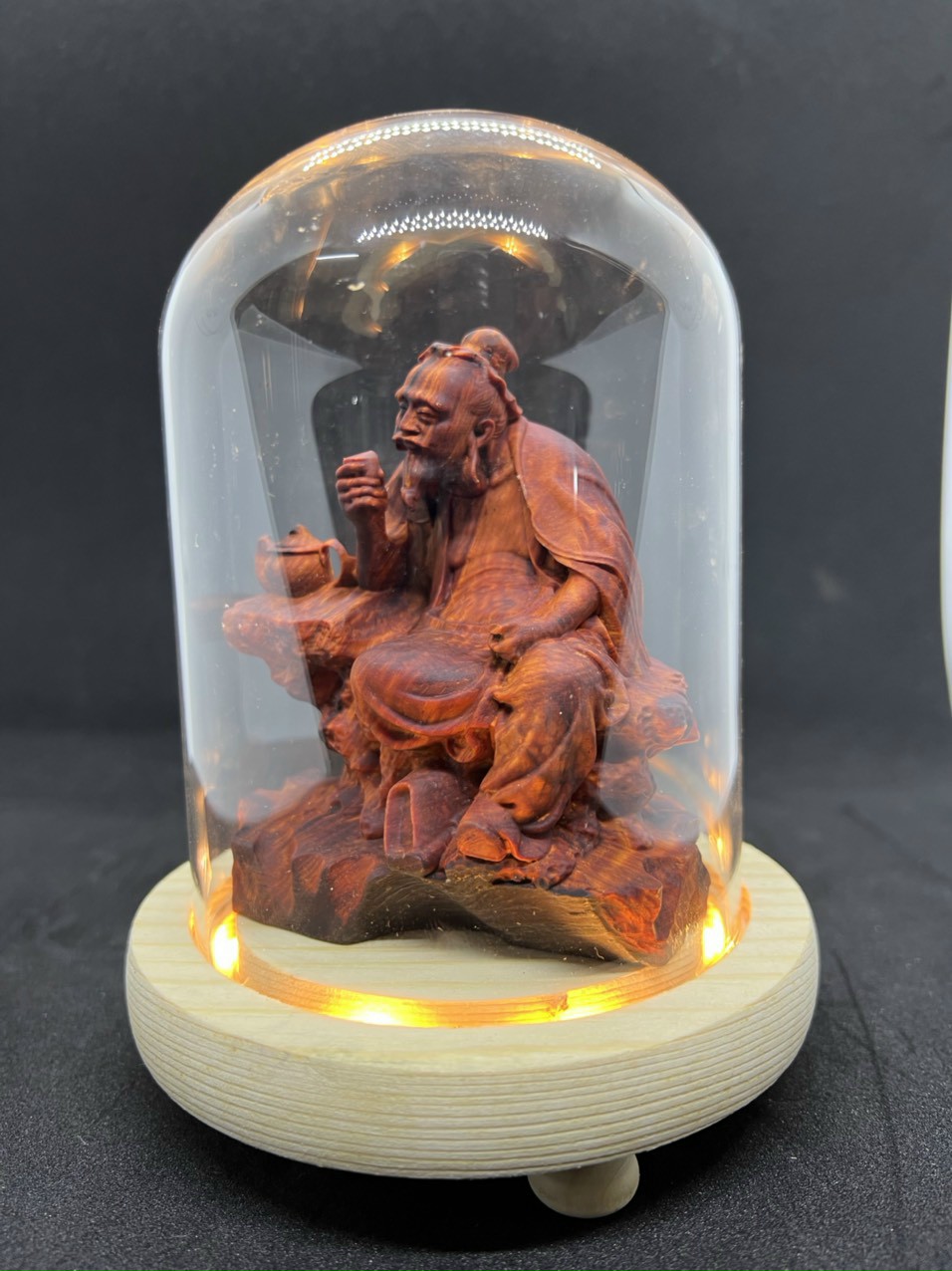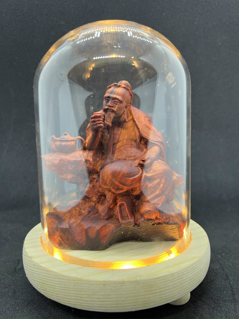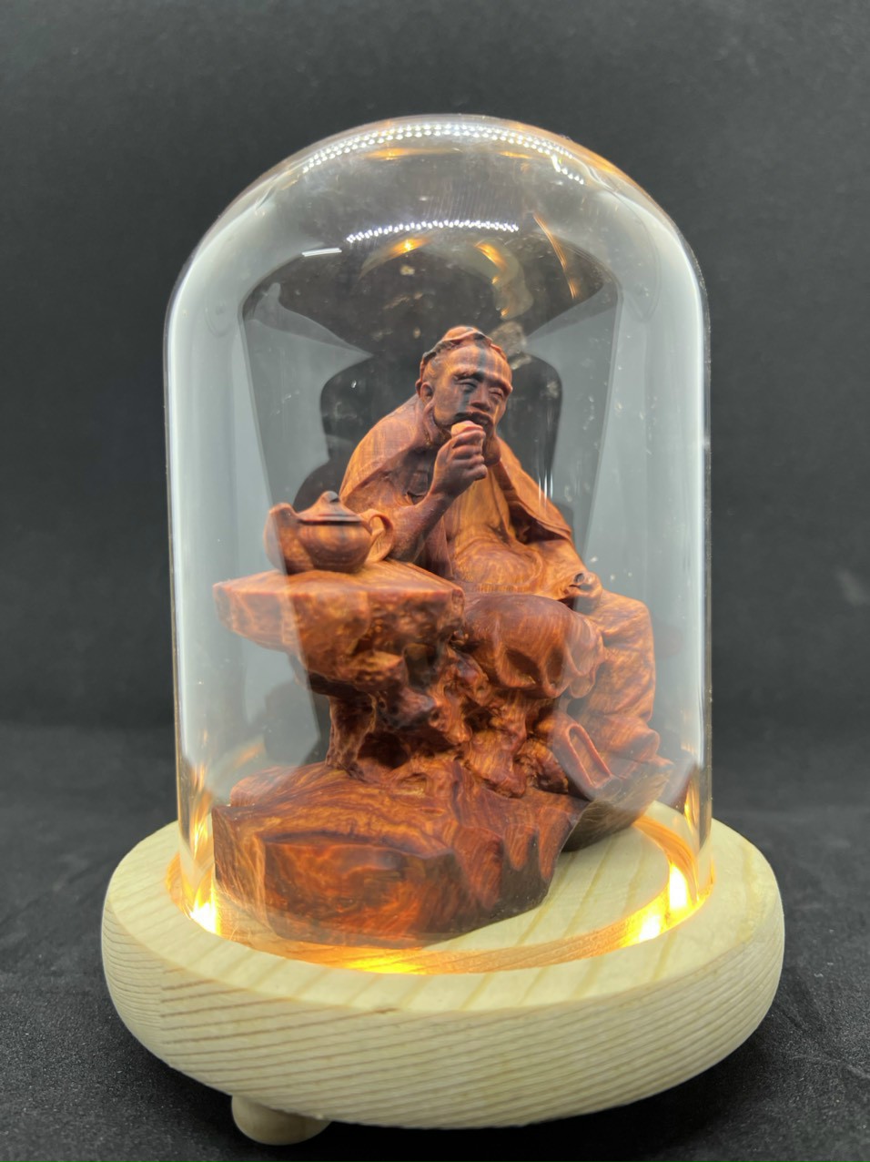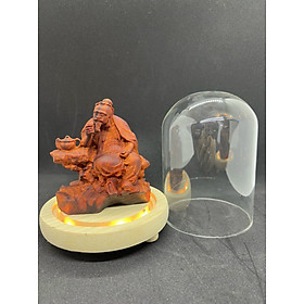 ✨Combo Tượng ông thần trà bằng gỗ trắc đỏ đen kt 10×9×5,5cm + thêm chân đế và lồng kính đủ bộ