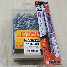 ✨Combo Vít bê tông 4mm đầu bằng F425 & mũi khoan tường đuôi lục giác 3.2mm Unika (không cần tắc kê nhựa)