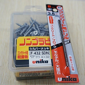✨Combo Vít bê tông 4mm đầu bằng F432 & Mũi khoan bê tông 3.5mm đuôi kẹp Unika (Không cần tắc kê nhựa)