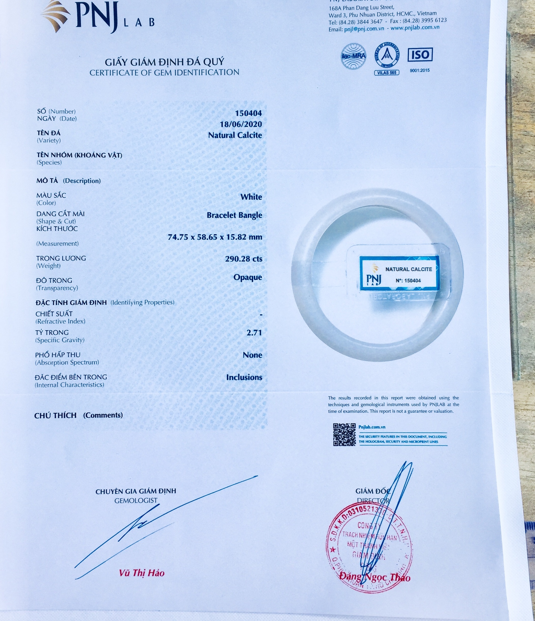 Đã giám định mẫu tại trung tâm giám định hàng đầu Việt Nam (PNJ LAB)