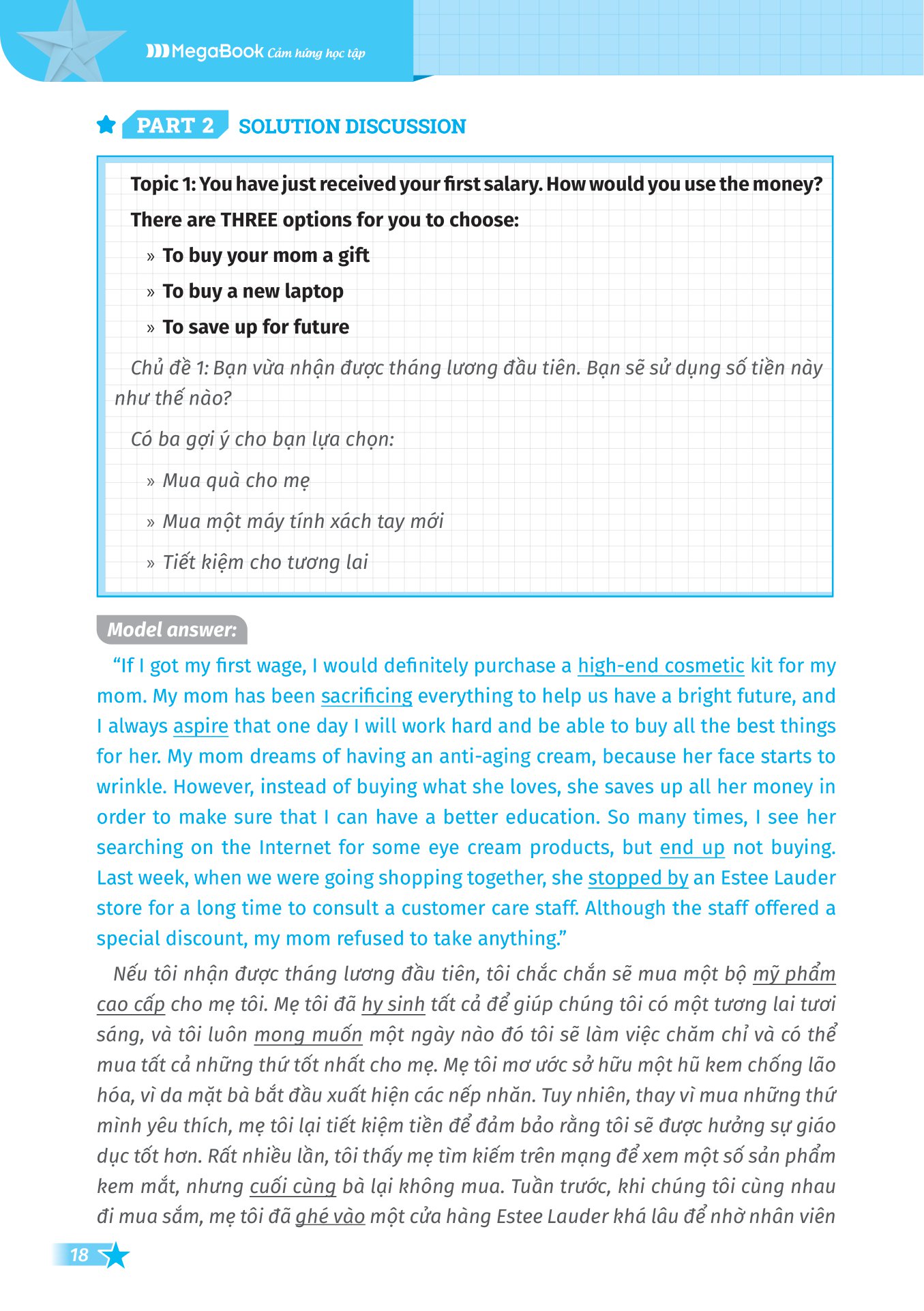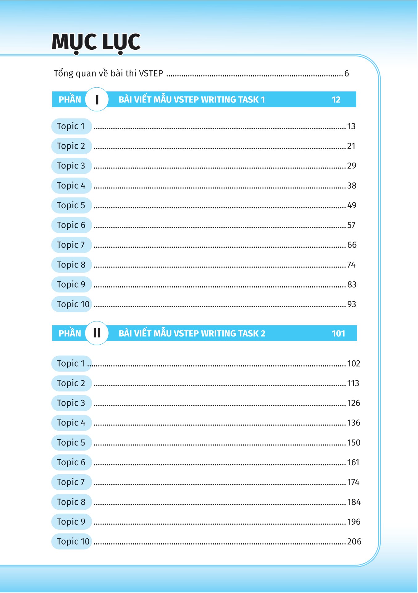 Cuốn sách được chia thành 10 bài học, mỗi bài học tập trung vào 1 chủ đề người học thường gặp trong kì thi VSTEP. Trong đó, mỗi chủ đề được chia thành 3 phần: