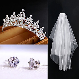 ✨Combo Vương miện cô dâu, bông tai nụ đá và voan lúp cài tóc cô dâu ngày cưới