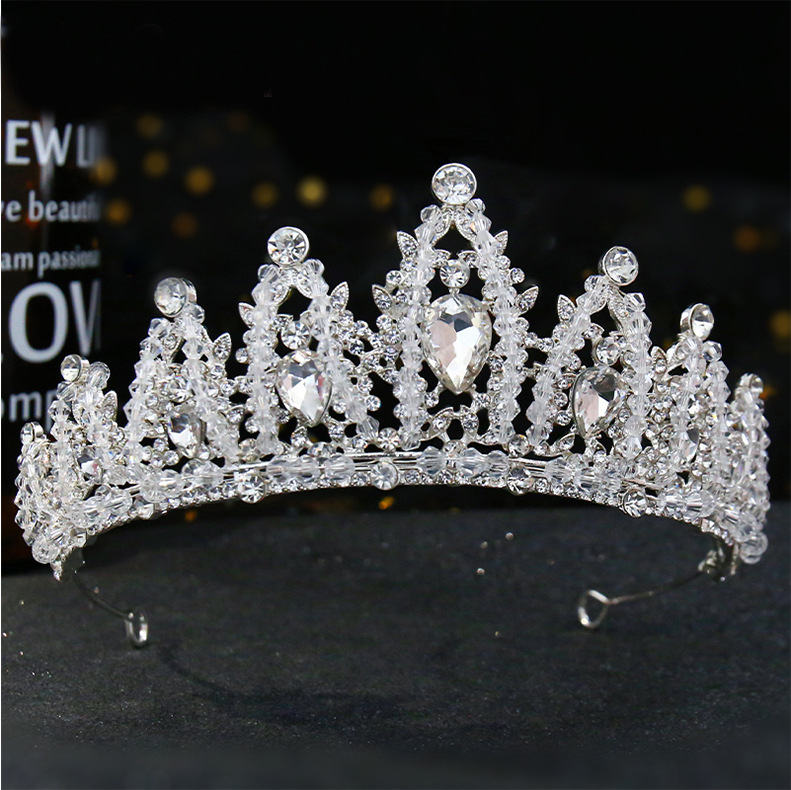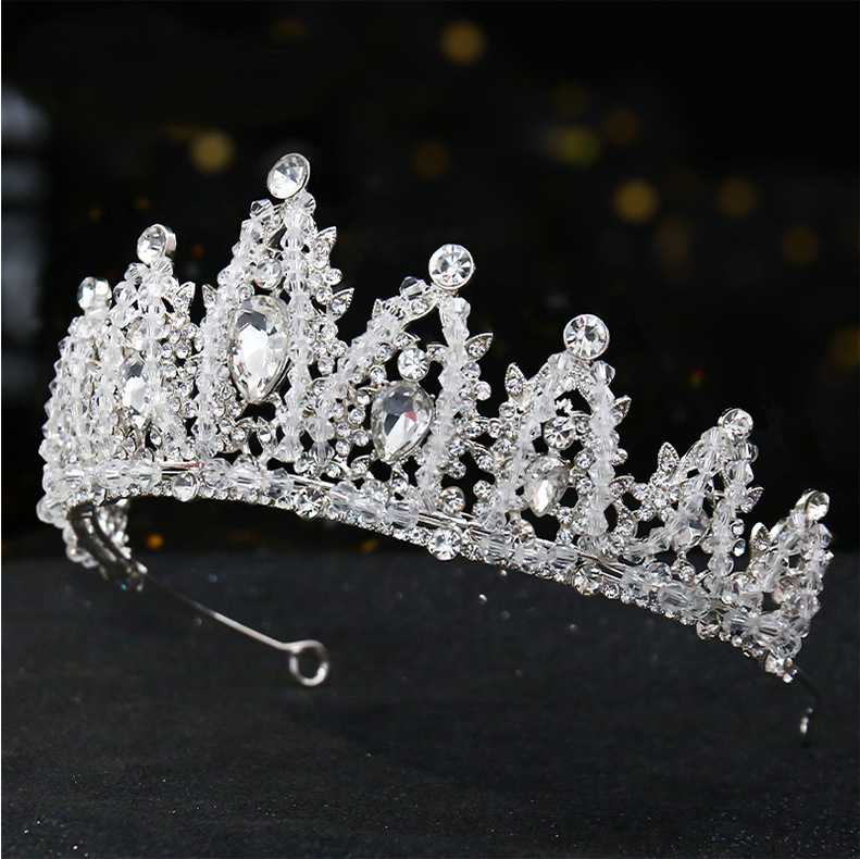 Vương miện đính đá lấp lánh cô dâu sang trọng tinh tế. Thiết kế đính đá lấp lánh phản chiếu ánh sáng qua từng góc nhìn, mạ bạc sáng bóng bền màu. Thích hợp trang