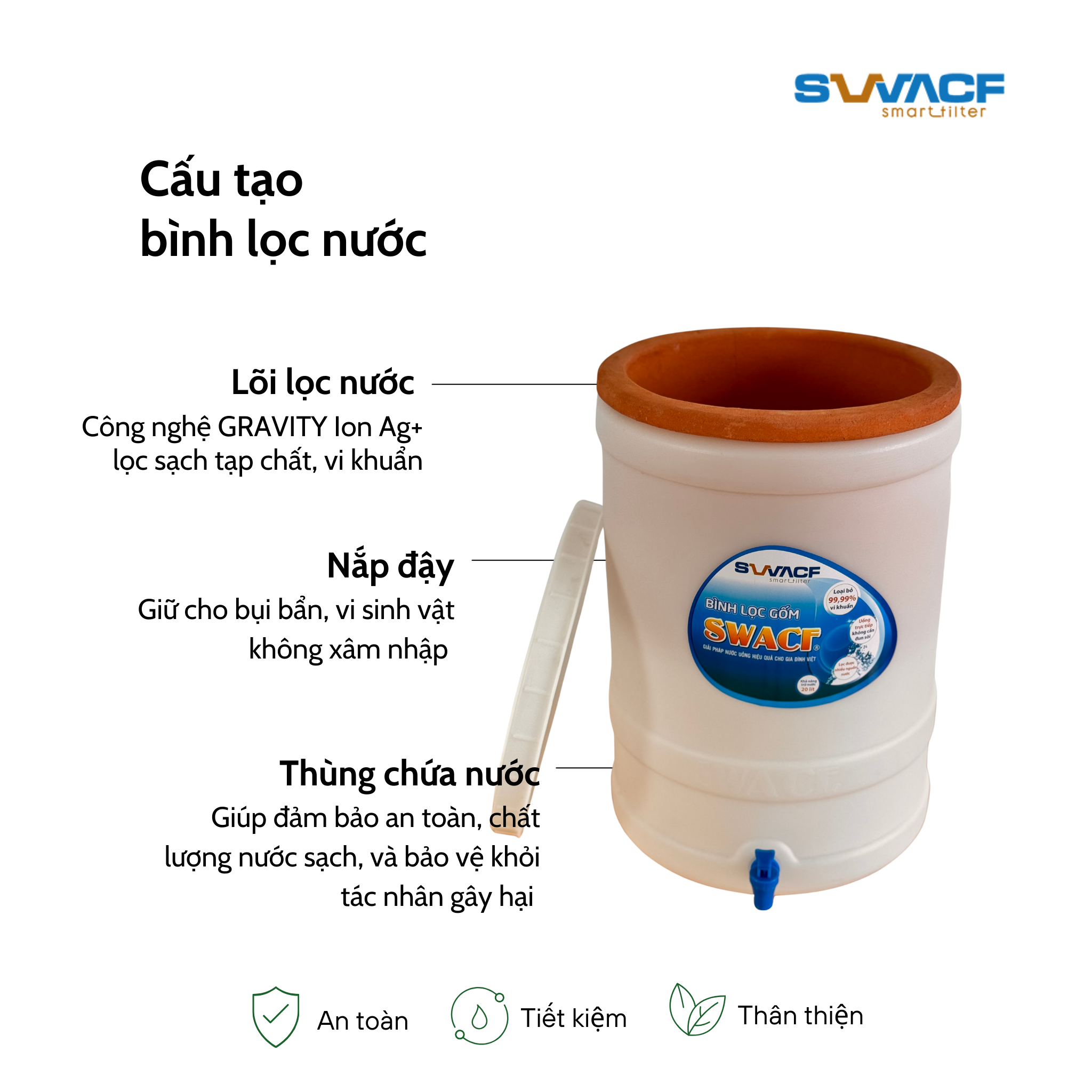 [COMPO 2 BÌNH LỌC NƯỚC] BÌNH LỌC NƯỚC SWACF 20L | Công nghệ GRAVITY Ion Ag+ - Model: 20L CWF - Khử trùng: Tinh thể BẠC - Công nghệ: Mỹ - Xuất xứ: Việt Nam