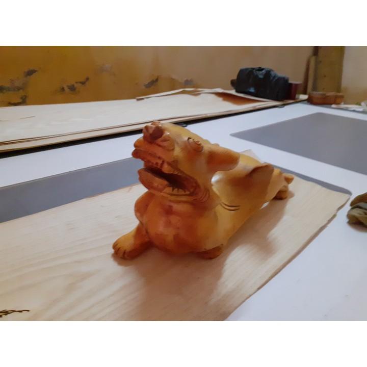 Con kỳ lân gỗ , là hình ảnh vận nuôi con chó ngày xưa được tạt bằng gỗ, gỗ tự nhiên chuyên làm tượng như ông dị lặc , tượng phật bà, mầu gỗ vàng , phun bóng pơ mu bề mặt, bóng sáng , làm quà biếu tuyệt vời