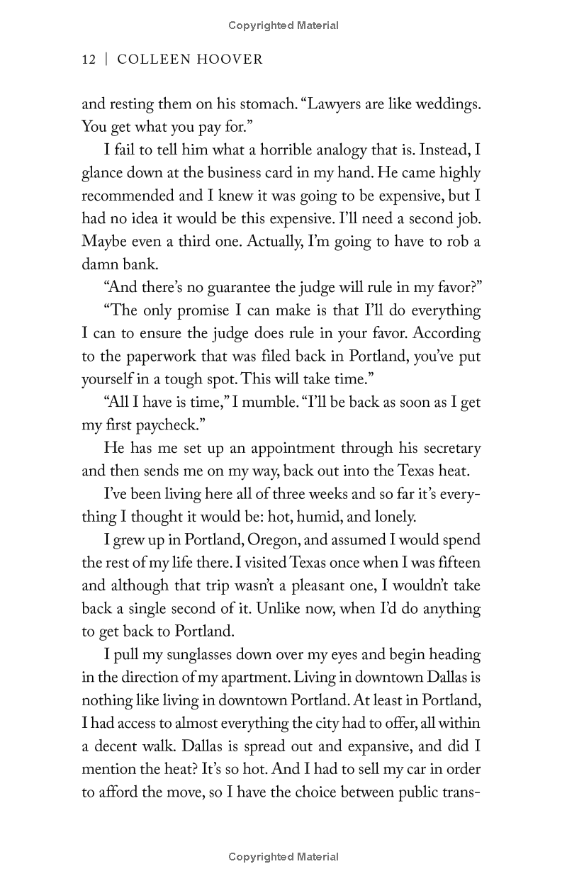 At age twenty-one, Auburn Reed has already lost everything important to her. In her fight to rebuild her shattered life, she has her goals in sight and there is no room for mistakes. But when she walks into a Dallas art studio in search of a job, she doesn't expect to find a deep attraction to the enigmatic artist who works there, Owen Gentry.