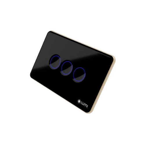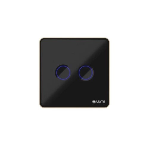 CÔNG TẮC CẢM ỨNG THÔNG MINH LUMI | Hình Vuông, Kính Lõm, Màu Đen, Viền Bo, Vàng | Smarthome Phú Thái