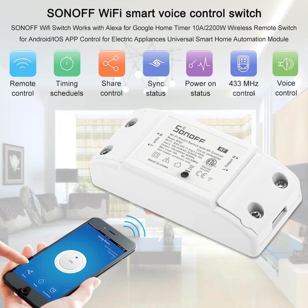 Overview: The WiFi smart switch can be controlled remotely using your phone, and devices connected with switches can work independently. Sonoff T2 supports 433MHz remote controller (not included) to control. Works with Amazon Alexa and