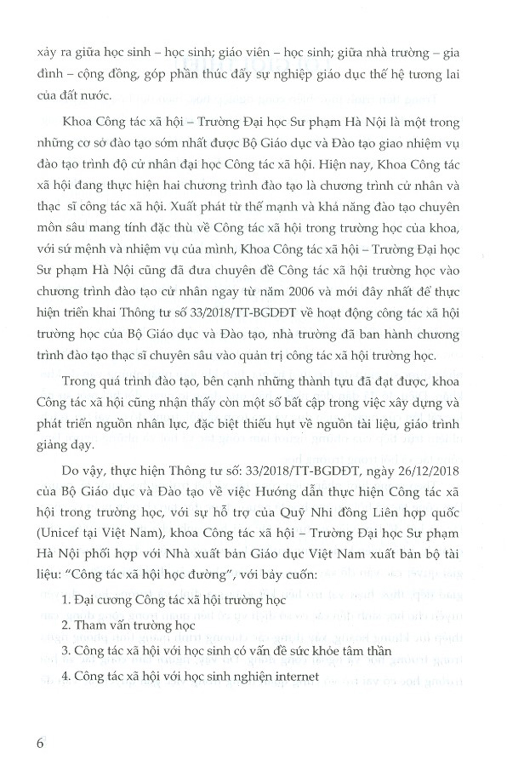 Cung cấp những kiến thức cơ bản về học sinh có vấn đề sức khoẻ tâm thần học đường; các chính sách, nguồn lực và dịch vụ trợ giúp học sinh có vấn đề sức khoẻ tâm thần. Trình bày khái quát về công tác xã hội, một số phương pháp của công tác xã hội với học sinh có vấn đề sức khoẻ tâm thần trong trường học; hướng dẫn các biện pháp chăm sóc sức khoẻ tâm thần cho một số nhóm đối tượng học sinh trong trường học.
