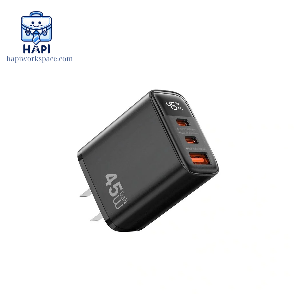 ✨Củ sạc GaN hàng chính hãng WiWU Firefly 45W Wi-G011: 3 cổng, hỗ trợ PPS 21V, QC3+, sạc nhanh đa thiết bị