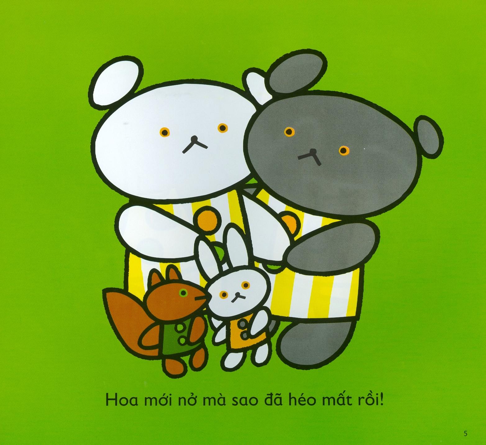 Mua tại TiktokCâu chuyện kể về hai bạn gấu trắng và gấu xám chơi và hỏi nhau rất nhiều câu hỏi về những vật xung quanh mình. Hoa nở, rồi héo…khóc rồi lại nín…tẽ ngã rồi đứng lên…mũi dài ra rồi ngắn lại…nhìn trộm rồi ẩn nấp…lặn dưới nước rồi lại ngẩng mặt lên…xếp hình rồi lại đổ nhào…mở ra rồi lại đóng vào…