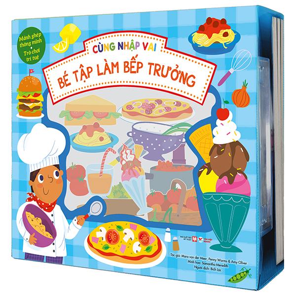 Tiếp nối 3 cuốn Thám hiểm thế giới khủng long, Bữa tiệc của công chúa và Những chú kì lân mầu nhiệm, Tân Việt Books tiếp tục thực hiện cuốn Bé tập làm bếp trưởng với diện mạo hộp màu xanh dương bắt mắt.