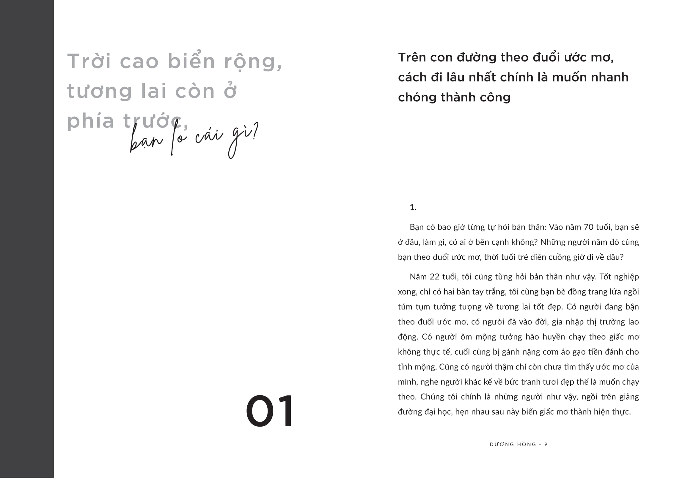 Tuổi trẻ - quãng thời gian của những ước mơ được nuôi dưỡng, quãng thời gian để ta phạm sai lầm và làm lại. Và không phải chỉ cần một lần vấp ngã là đôi chân đã có thể cứng cỏi bước tiếp, không phải chỉ cần chạy thật nhanh là chúng ta sẽ đến được vạch đích ta muốn. Cuộc đời này, nếu bạn chỉ hối hả tìm đường tắt để đi, chỉ nhìn thấy mình trong những người xung quanh, thì bạn sẽ mãi chẳng tìm thấy được thành công.