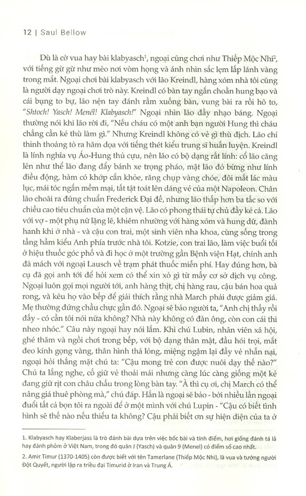 “Mọi thứ thuộc về Chicago dường như đều tụ họp lại trong cuốn sách này, và xét cho cùng là toàn bộ nước Mỹ, cũng như phần lớn lịch sử nhân loạ Người ta phải lòng cuốn sách trên khía cạnh nghệ thuật - vì sự hài hước, sự hào sảng, sự đặc quánh, vì chất liệu ngôn ngữ học của nó - và, đương nhiên, vì hy vọng tràn đầy trong những trang sách.” -- The New Yorker