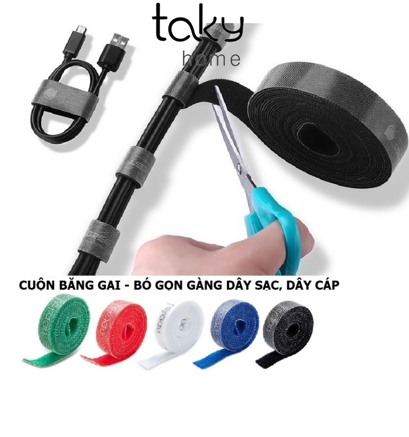 ✨Cuộn Băng Gai Dán 2 Mặt, Cuộn Cố Định Dây Sạc, Dây Cáp, Dây Điện, Gọn Gàng, Tái Sử Dụng, Tiện Dụng. TakyHome 5677