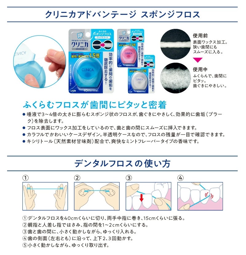 ✨Cuộn chỉ nha khoa Lion Clinica Advantage 40m làm sạch các mảng bám giữa kẽ răng & ngăn ngừa các bệnh lý về răng miệng - Made in Japan