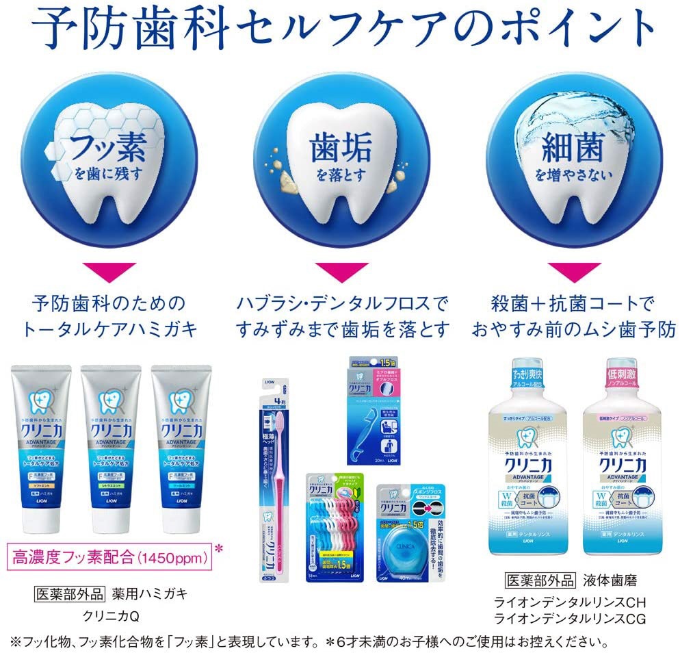 - Làm sạch cặn thức ăn & mảng bám giữa các kẽ răng với Clinica Advantage rất khó để làm sạch mảng bám giữa các kẽ răng chỉ bằng bàn chải đánh răng thông thường và có 1 tỷ mầm bệnh trong 1 mg mảng bám, là nguyên nhân gây sâu răng và bệnh răng lợi. Điều quan trọng là phải làm sạch mảng bám này một cách chắc chắn để ngăn ngừa sâu răng và bênh nha chu.