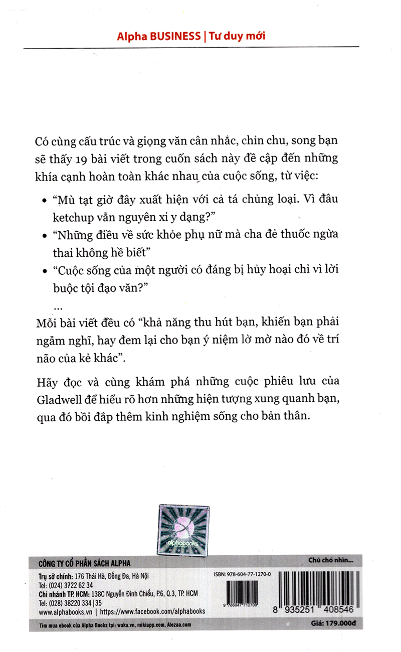 Hãy đọc và cùng khám phá những cuộc phiêu lưu của Gladwell để hiểu rõ hơn những hiện tượng xung quanh bạn, qua đó bồi đắp thêm kinh nghiệm sống cho bản thân.