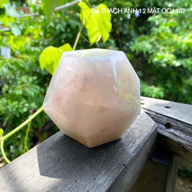 "Bỏ túi" năng lượng yêu thương và an lành với viên đá thạch anh hồng 12 mặt QC1409. Đường kính 8cm, nặng 520gr, chế tác tinh xảo. Biểu tượng của tình duyên, chữa lành và sự