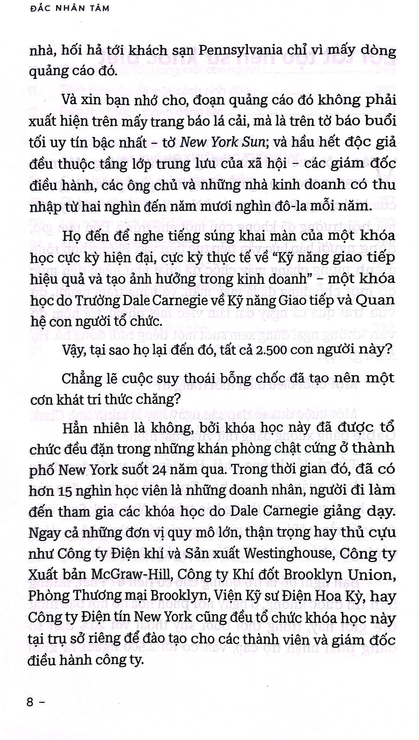Cuốn sách "Đắc nhân tâm" của Dale Carnegie không chỉ là một tài liệu về ứng xử - giao tiếp, mà nó còn là một hành trình tri thức và trải nghiệm sâu sắc cho mọi đối tượng độc giả, không phân biệt độ tuổi, chỉ cần có sự quan tâm và khao khát phát triển bản thân. Với sức ảnh hưởng lớn, cuốn sách này không chỉ là nguồn cảm hứng mà còn là hướng dẫn chi tiết giúp mỗi người tự khám phá và phát triển tiềm năng của bản thân m.ình.