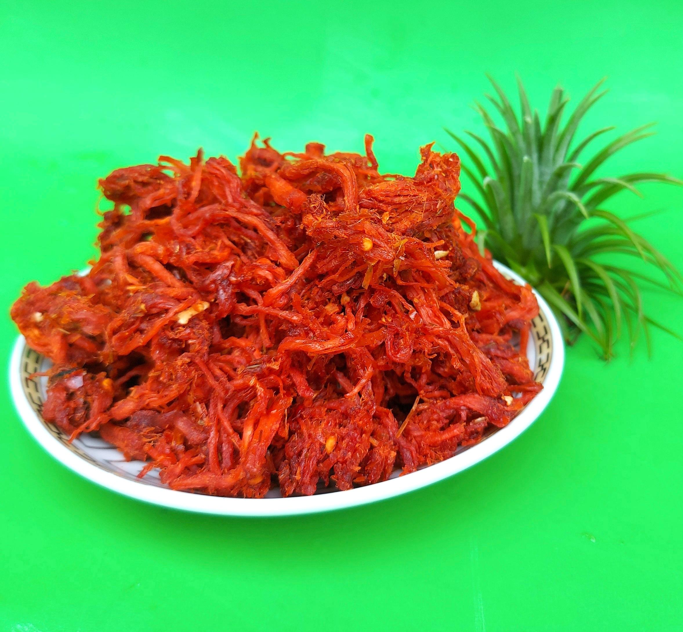 Mua tại TiktokThành phần: 45% thịt nạc heo, 45% thịt nạc gà, đường, muối, ớt, tiêu, gừng, tỏi, sả, ngũ vị hương, phẩm màu tổng hợp được phép dùng trong thực phẩm (E110)