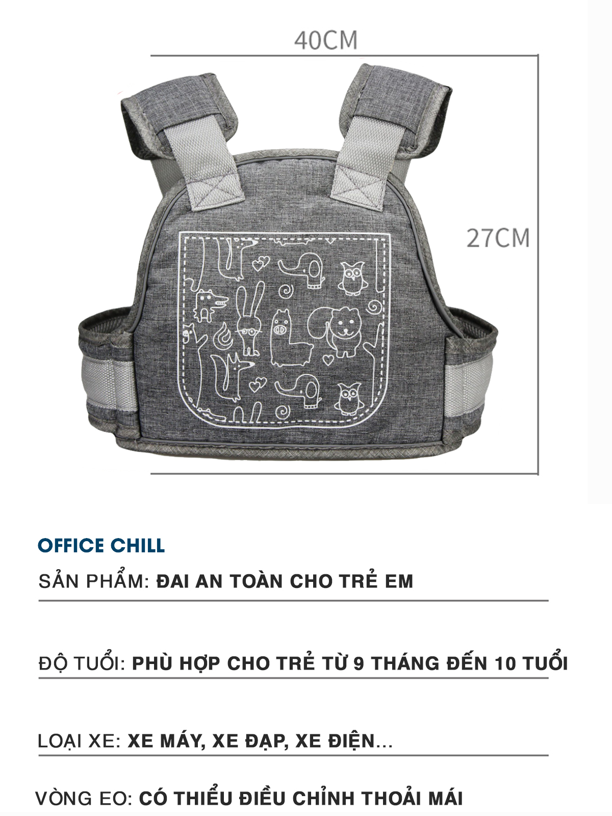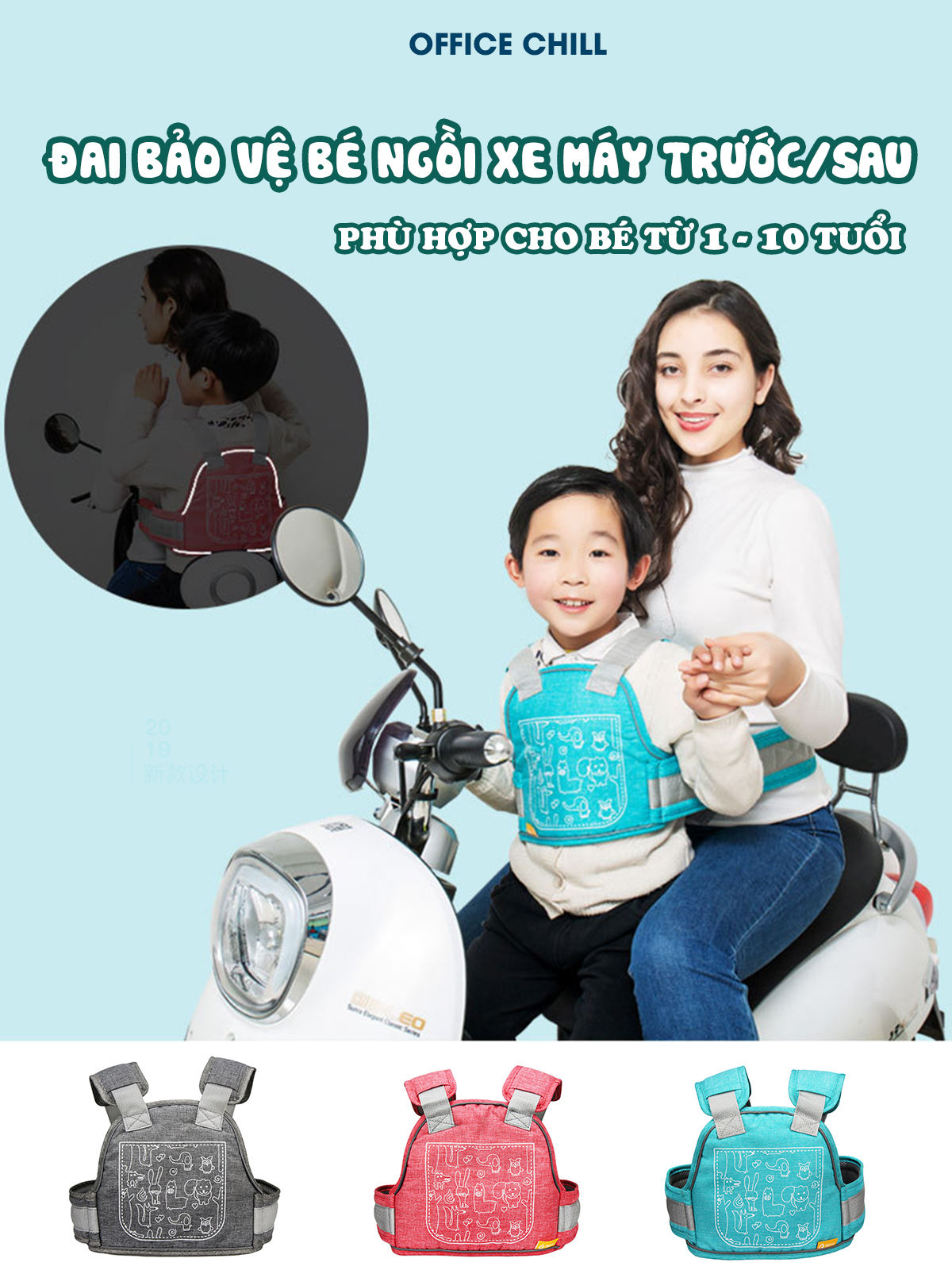 ✨Đai An Toàn Cho Bé Đi Xe Máy OFFICE CHILL Bảo Vệ Bé Ngồi Trước Hoặc Sau Phù Hợp Từ 1 Đến 10 Tuổi