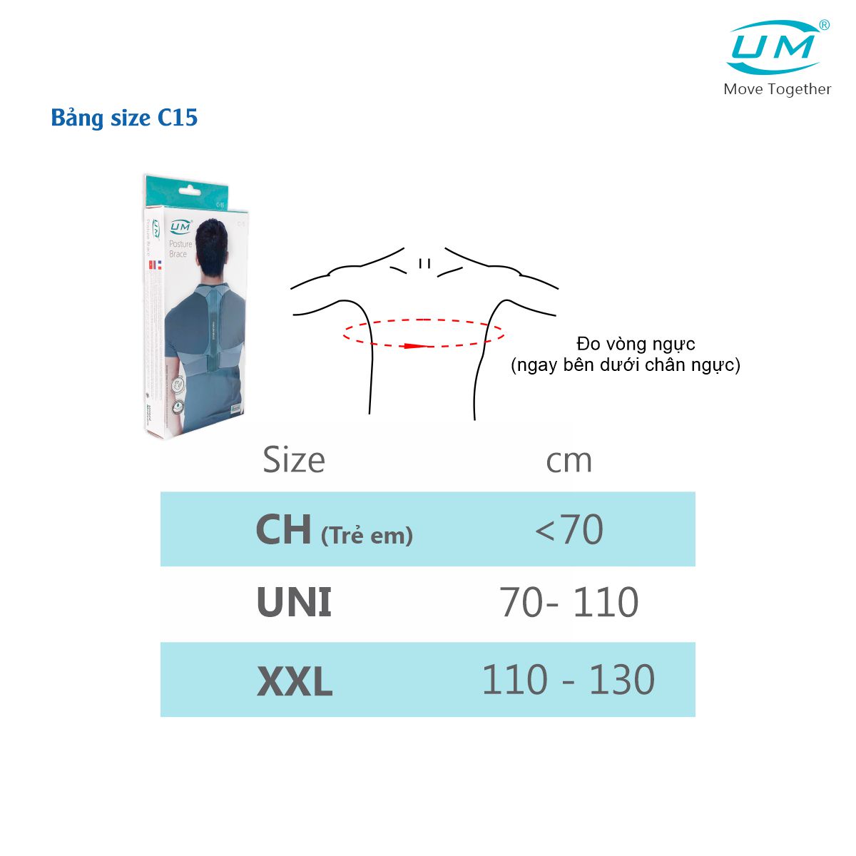 ĐAI CHỐNG GÙ UM C15 Sản phẩm bao gồm: 01 chiếc/hộp và tài liệu hướng dẫn kèm theo Lưu ý: Giá bán trên là giá bán 1 chiếc ------------------ CHỈ ĐỊNH Giữ lưng và vai