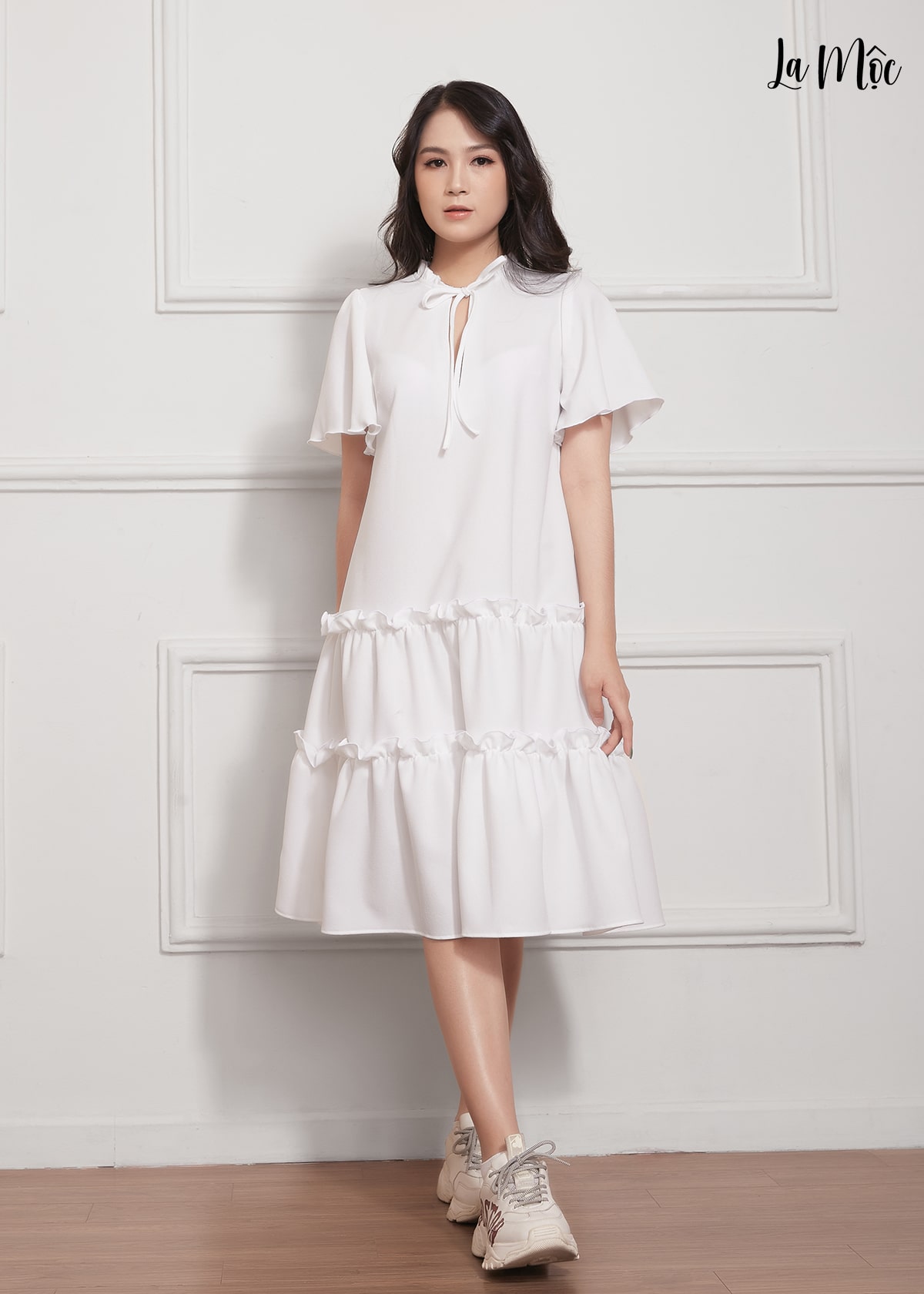 ✨Đầm Babydoll Lụa Crep Nhún Bèo Tay Loe Maxivic, La Mộc - LM012206
