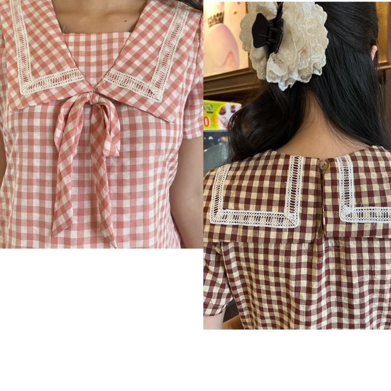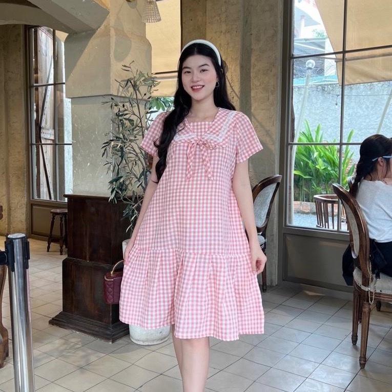 ÔNG TIN SẢN PHẨM: Đầm bầu karo cổ thuỷ thủ phom babydol năng động, trẻ trung. Chất vải cotton hàn nhẹ mát, thấm hút mồ hôi. Điểm nhấn tay phồng nhẹ dễ thương khi mặc