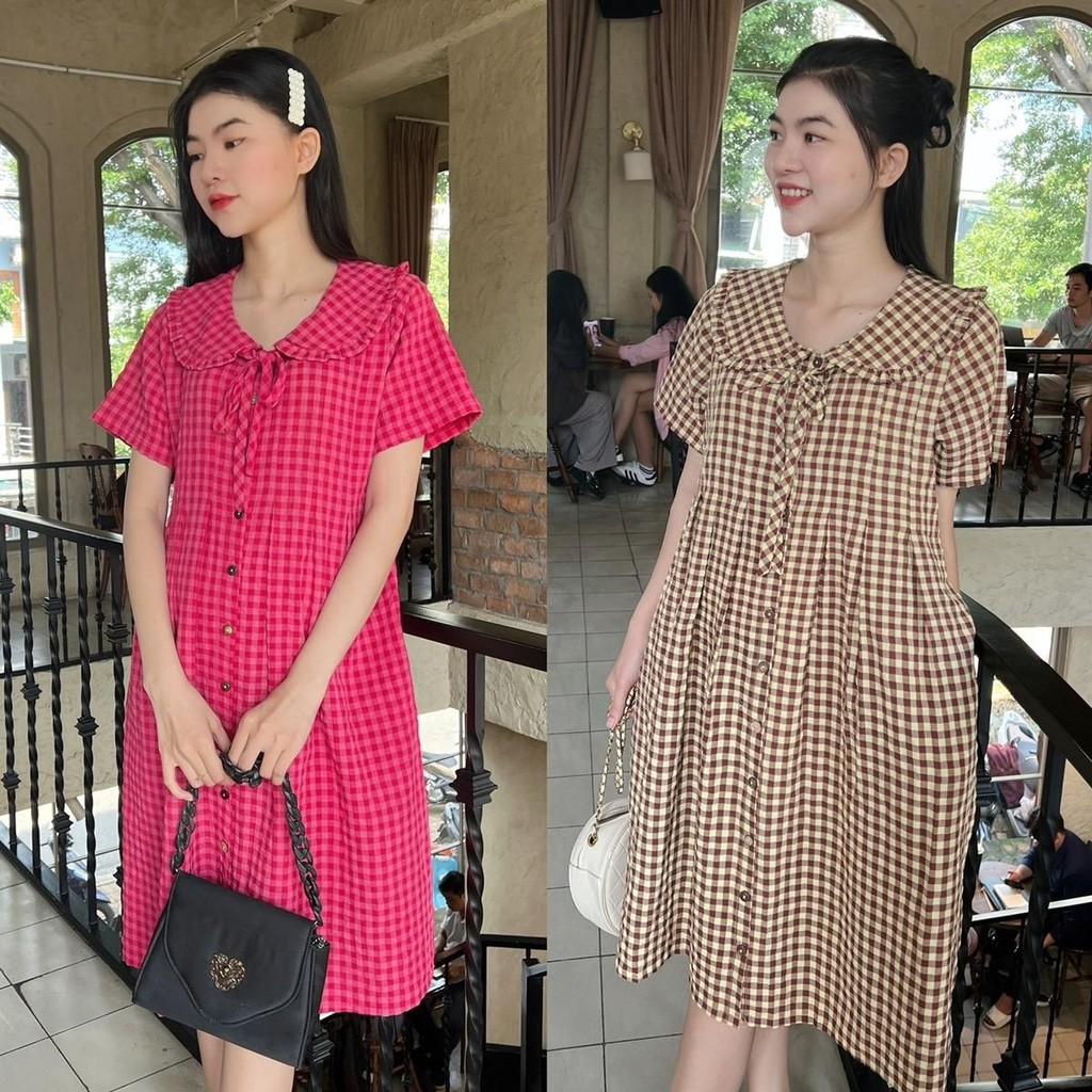 ÔNG TIN SẢN PHẨM: Đầm bầu karo cổ thuỷ thủ phom babydol năng động, trẻ trung. Chất vải cotton hàn nhẹ mát, thấm hút mồ hôi. Điểm nhấn tay phồng nhẹ dễ thương khi mặc