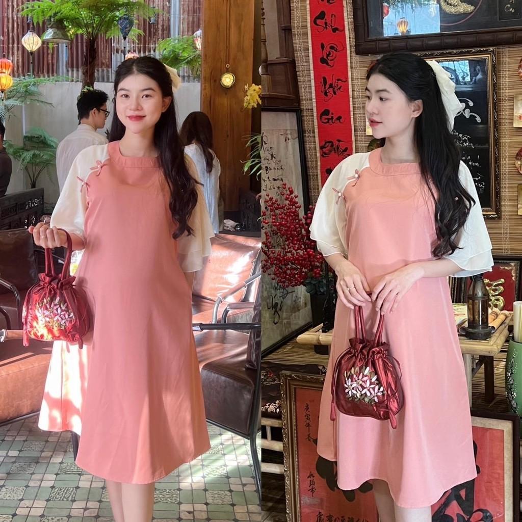 Đầm thiết kế kiểu Áo dài cách tân phù hợp Mom diện các dịp Lễ Tết, dự Tiệc, đi chơi. Mặc lên chỉ có xinh và xinh thôi Mom ạ.