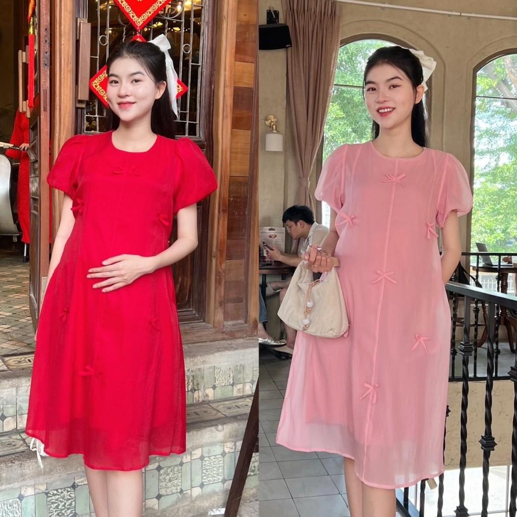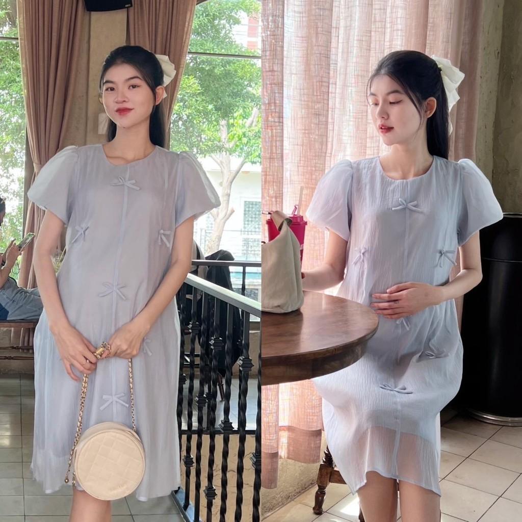 ✨Đầm bầu tơ phom suông đính nơ nhẹ nhàng, dễ thương, sang chảnh Nữ Women