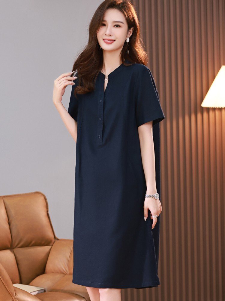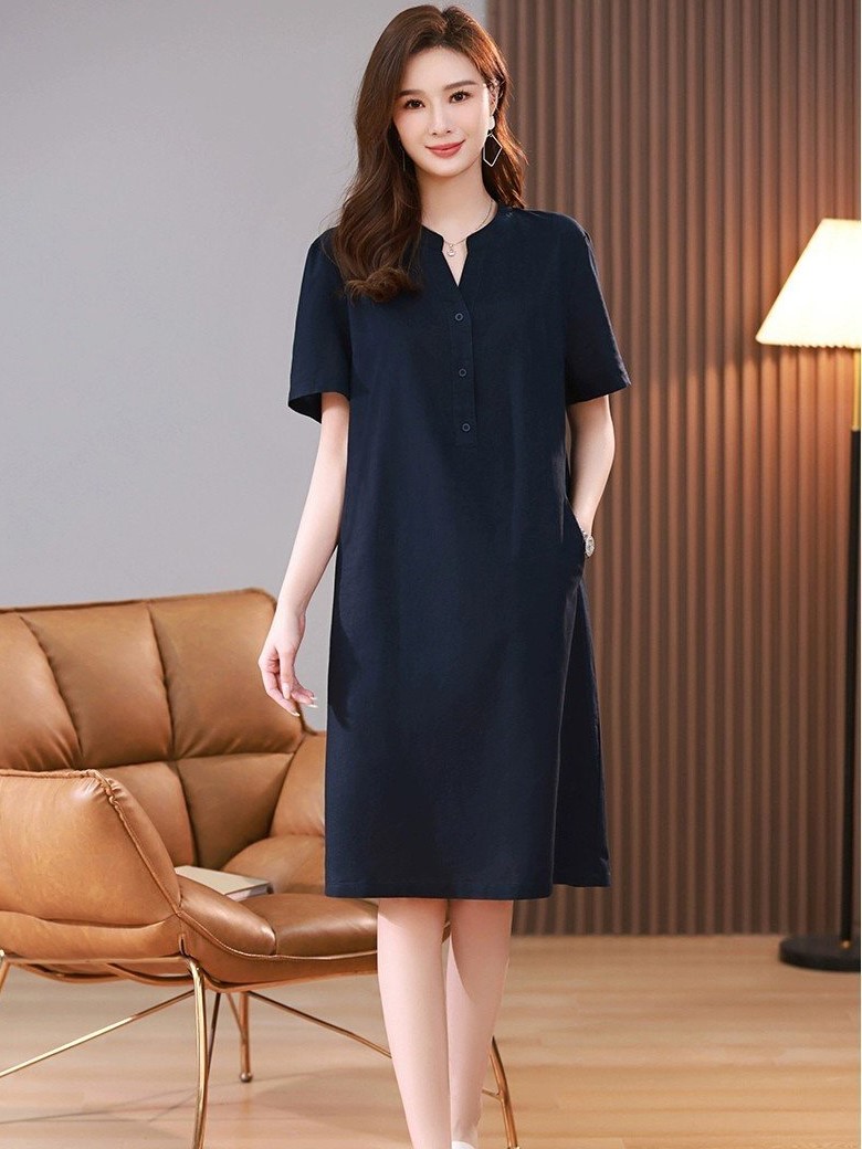 ღ THÔNG TIN SẢN PHẨM: Tên sản phẩm: Đầm sơ mi xanh navy Chất liệu: Chất gân ý Chi tiết sản phẩm: không lót, không túi Thông số size: S, M, L,