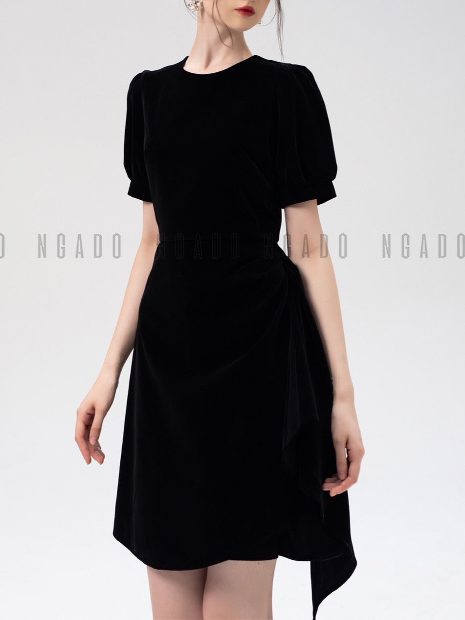 ღ THÔNG TIN SẢN PHẨM: Tên sản phẩm: Đầm đen tay voan phồng Thông số size: S, M, L, XL Chất liệu: Chất gân ý phối tơ Chi tiết sản phẩm: