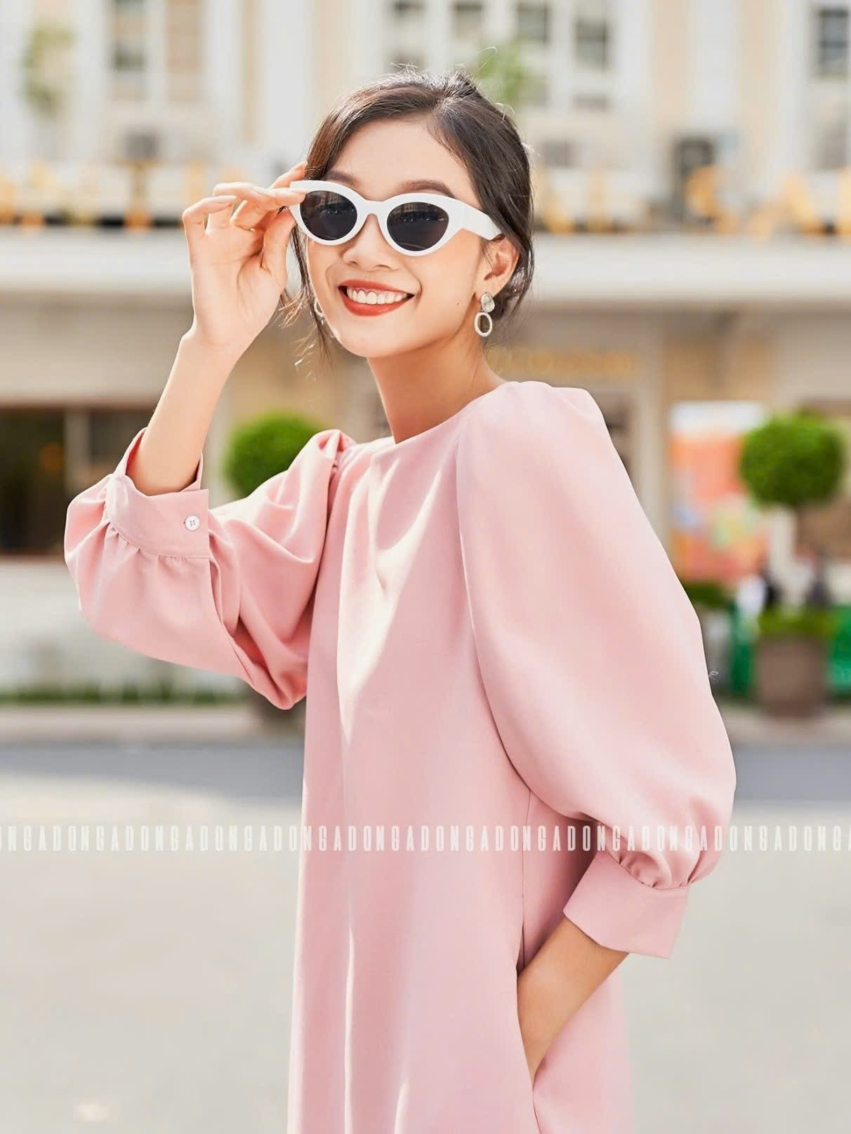✨Đầm hồng cổ thuyền tay lửng NGADO , đầm nữ , Đầm suông , Đầm thiết kế