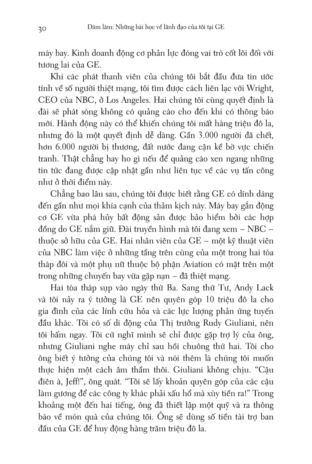 "Dám làm: Những bài học về lãnh đạo của tôi tại GE" không chỉ là một cuốn hồi ký về sự nghiệp của một CEO, mà còn là một bài học về lãnh đạo trong những thời điểm khó khăn. Immelt không né tránh việc thừa nhận các sai lầm của mình, và ông nhấn mạnh tầm quan trọng của việc học hỏi từ những thất bại để tiến lên. Cuốn sách cũng là một minh chứng cho sự phức tạp và áp lực của việc điều hành một tập đoàn toàn cầu, và làm thế nào để một nhà lãnh đạo có thể giữ vững tinh thần, dù cho hoàn cảnh có khó khăn đến đâu. Cuối cùng, đây là một lời nhắc nhở rằng, trong kinh doanh, không có thành công nào đến dễ dàng, và việc lãnh đạo đòi hỏi sự can đảm, kiên nhẫn, và khả năng chịu đựng áp lực khủng khiếp.
