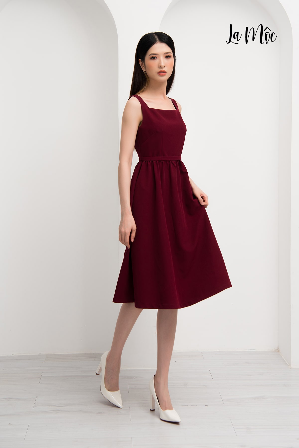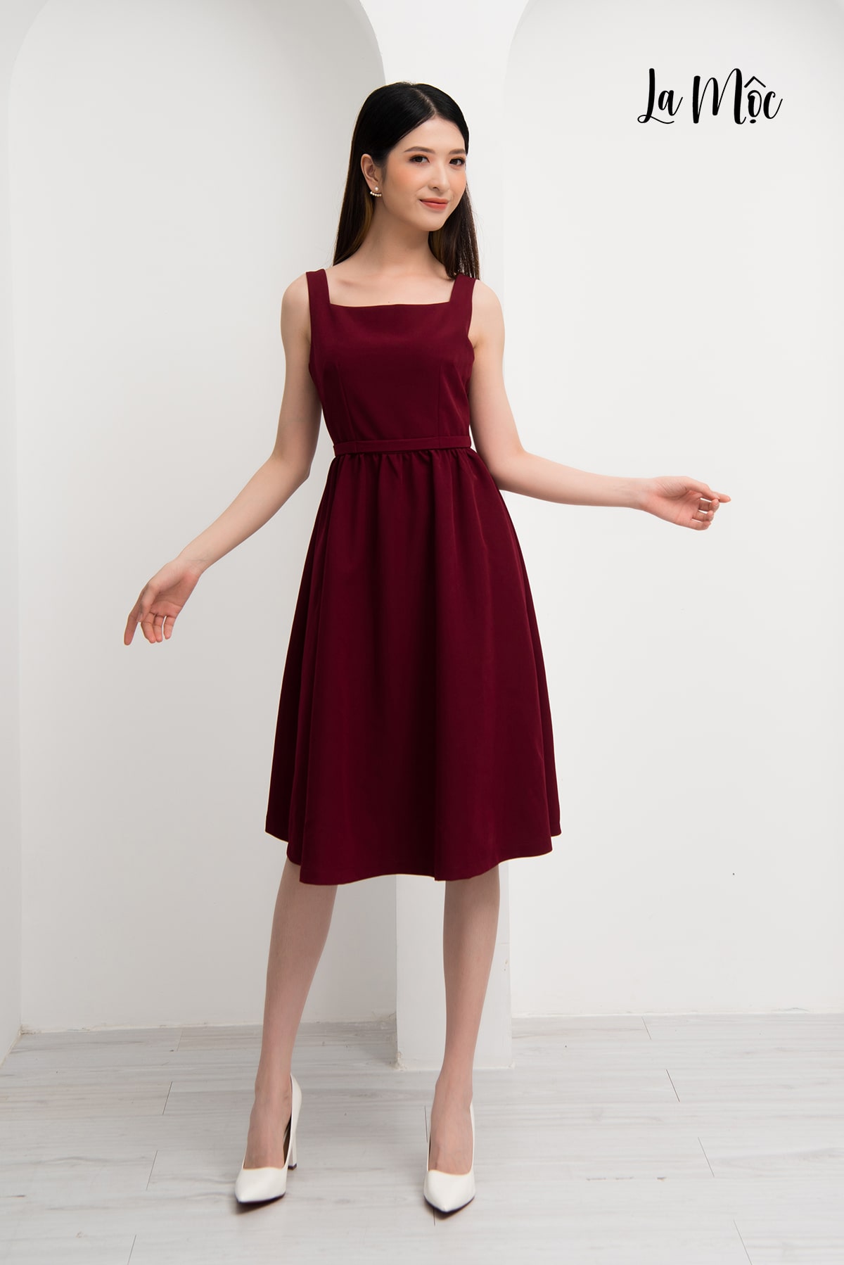 ✨Đầm Lụa Xòe Midi 2 Dây Cổ Vuông Maxivic, La Mộc - LM72146