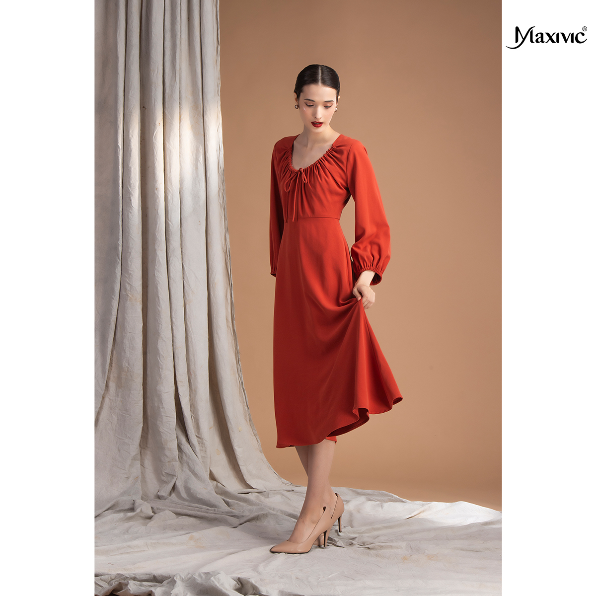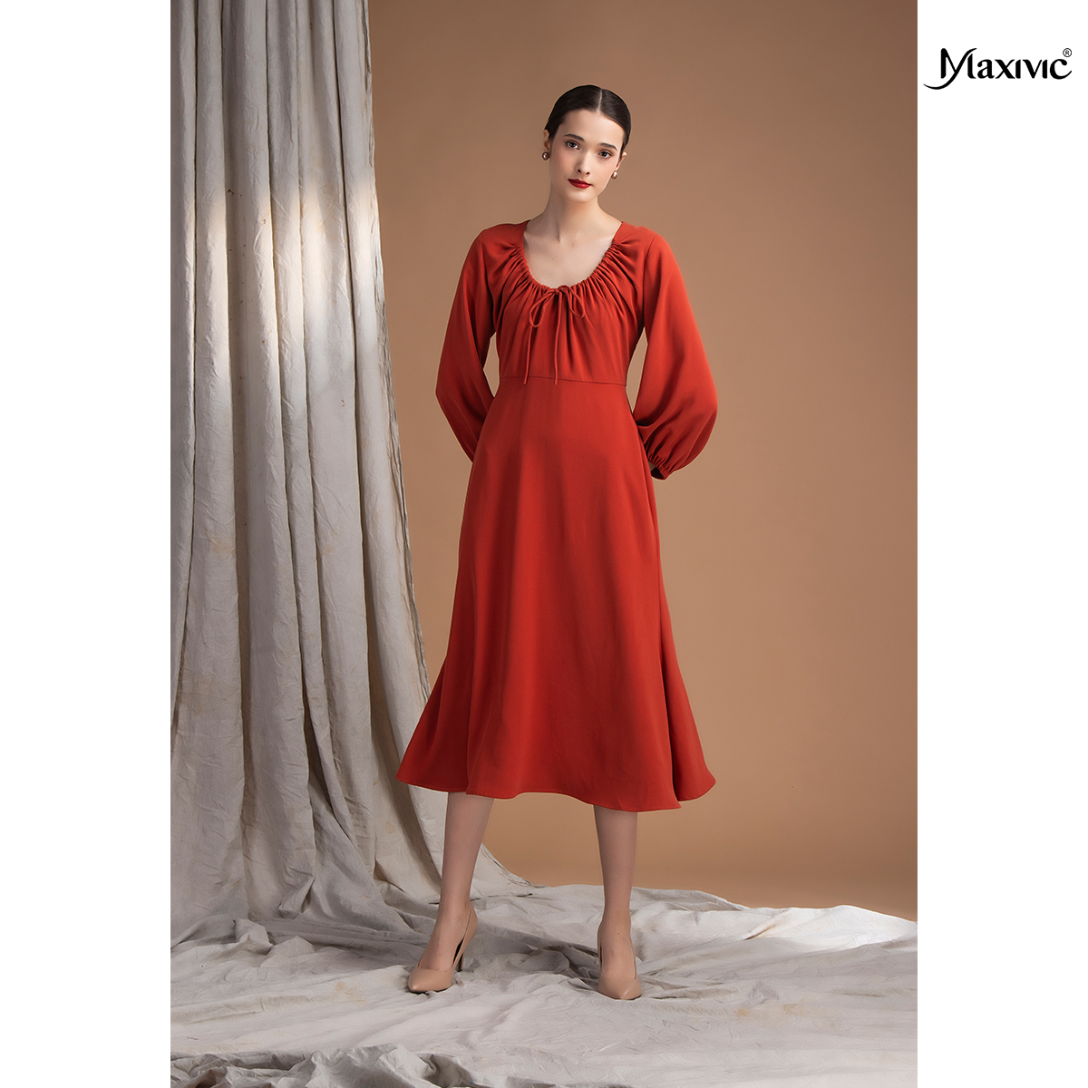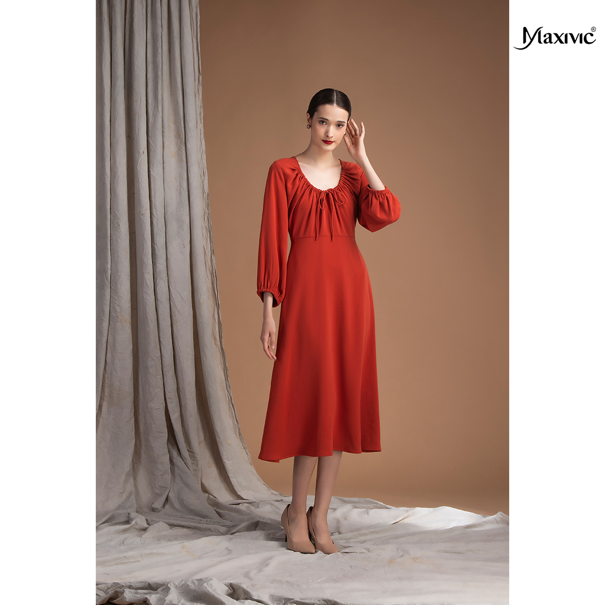 ✨Đầm rút dây ở cổ màu gạch M012210029