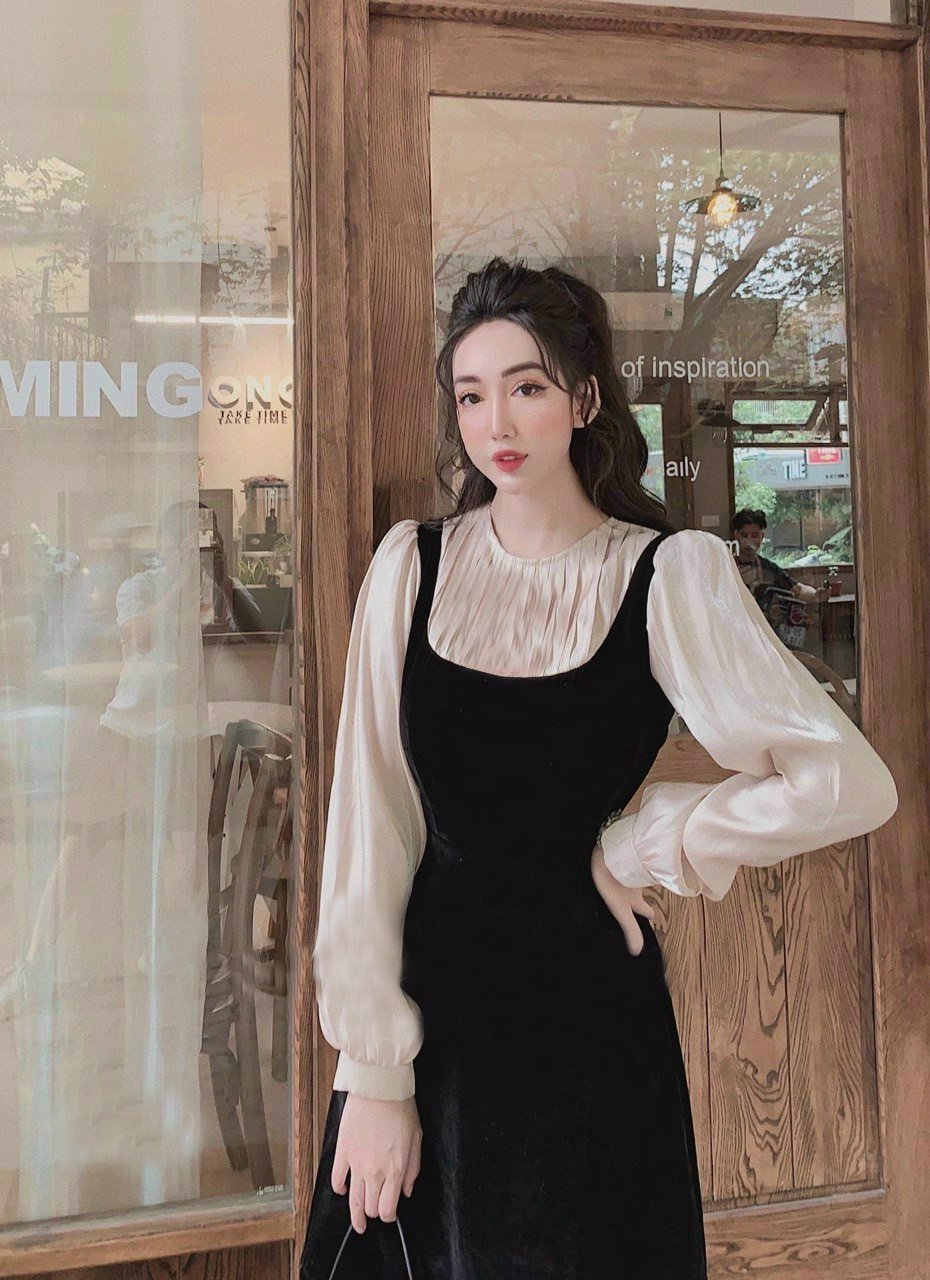 Váy sát nách cổ sen tầng bèo xinh xỉuuuuu váy có kèm quần bảo hộ nên ce vẫn thoải mái nha 2 màu: đen - kem •S/M Sản phẩm này là tài sản cá nhân