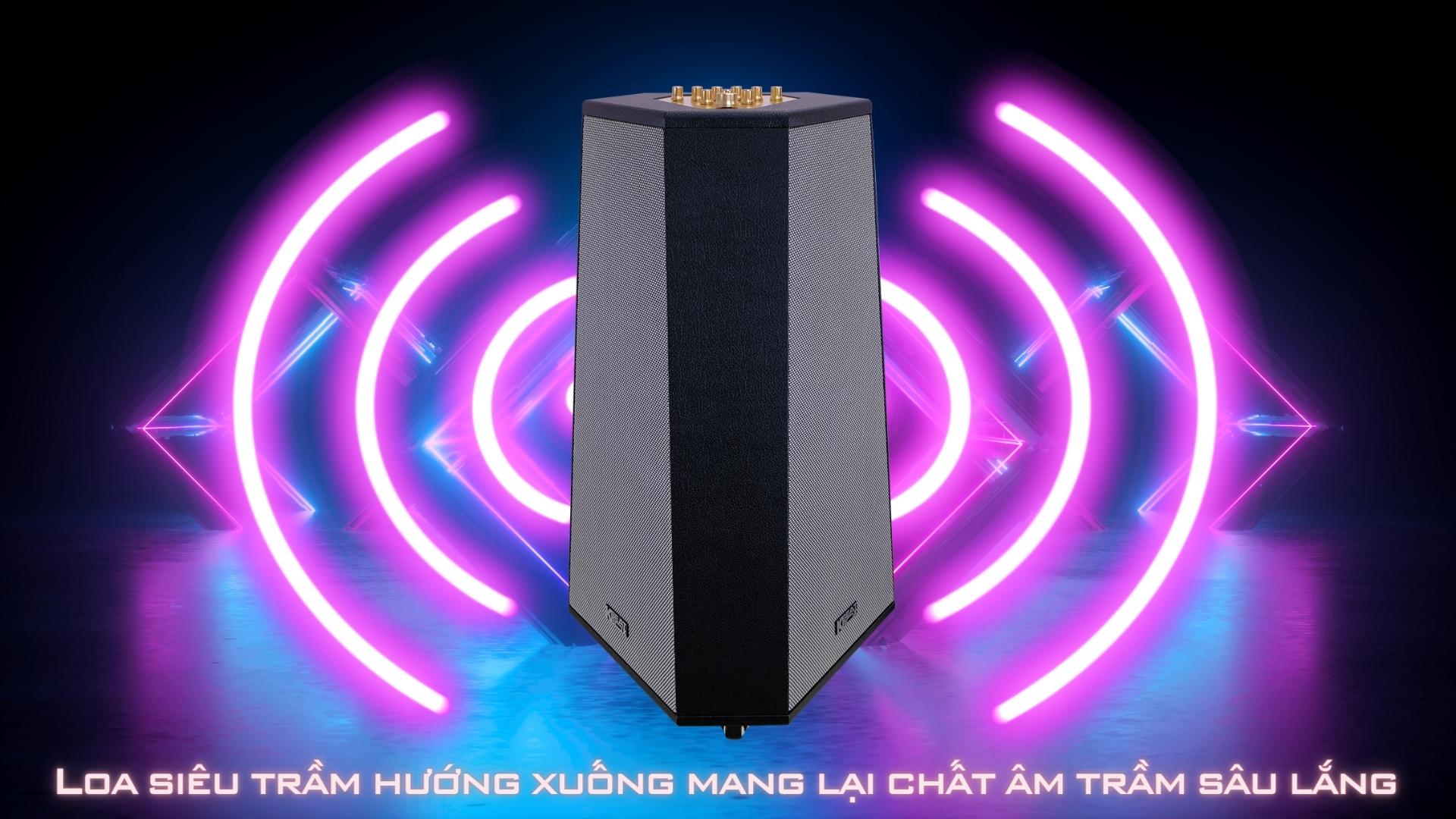 Công suất RMS 150W cho âm trầm mạnh mẽ, sâu lắng. Beat nhạc chất lượng cao, chọn bài trộn chung YouTube và nguồn nhạc chọn lọc qua app CloudKaraoke.